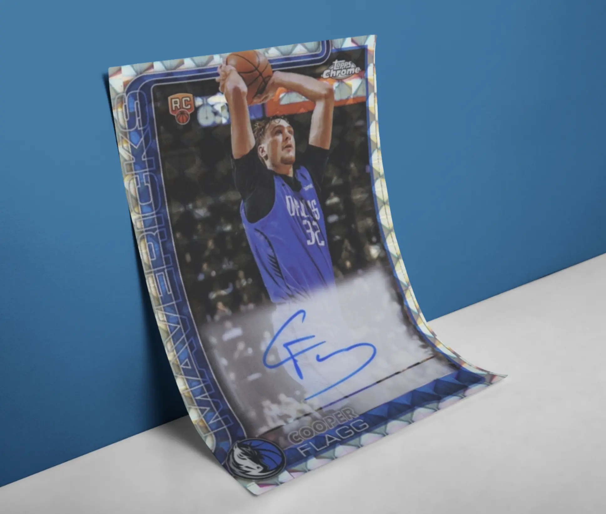 Topps Chrome Cooper Flagg Rookie Auto Refractor 12x17 Poster Dallas Mavs