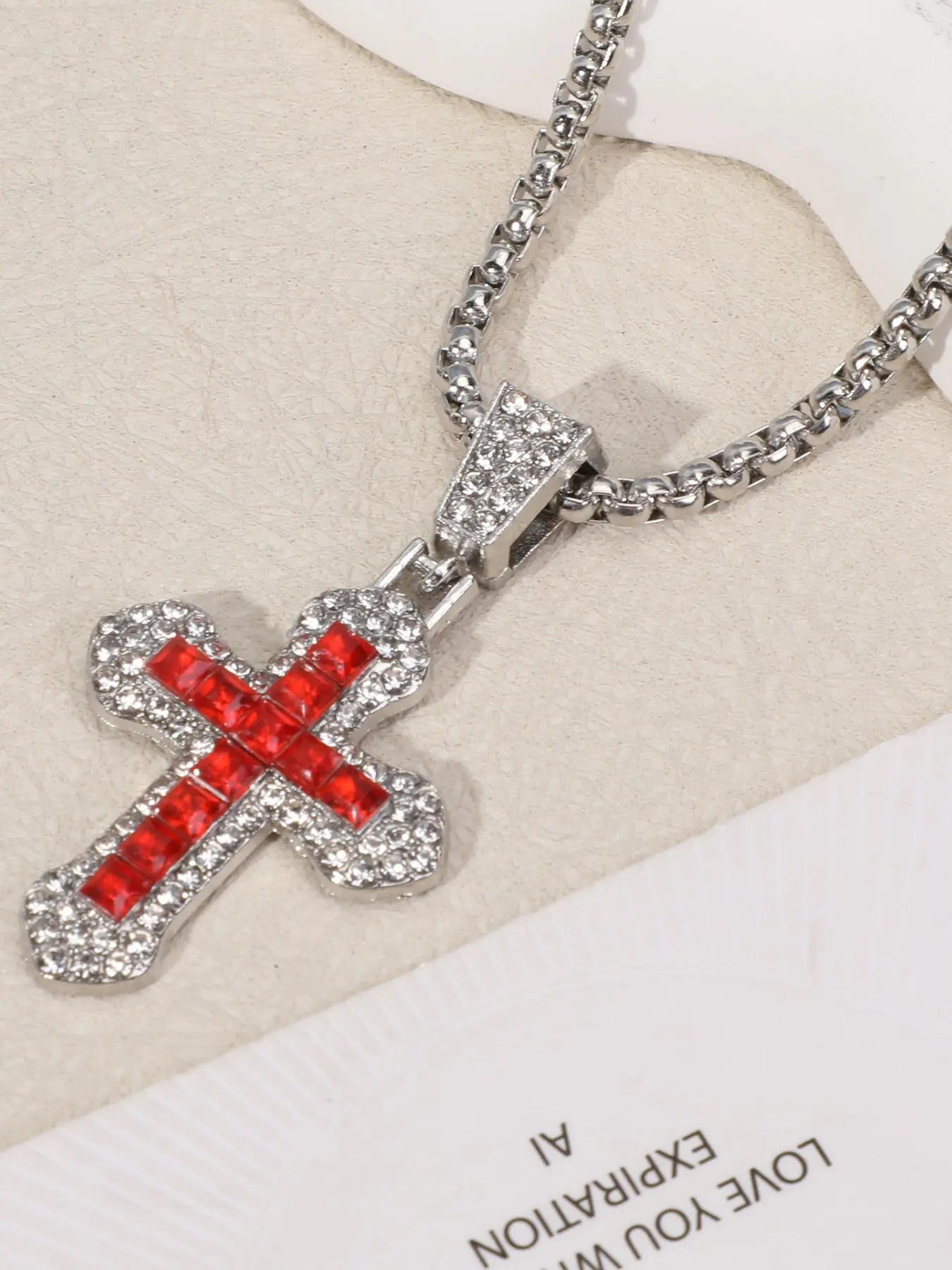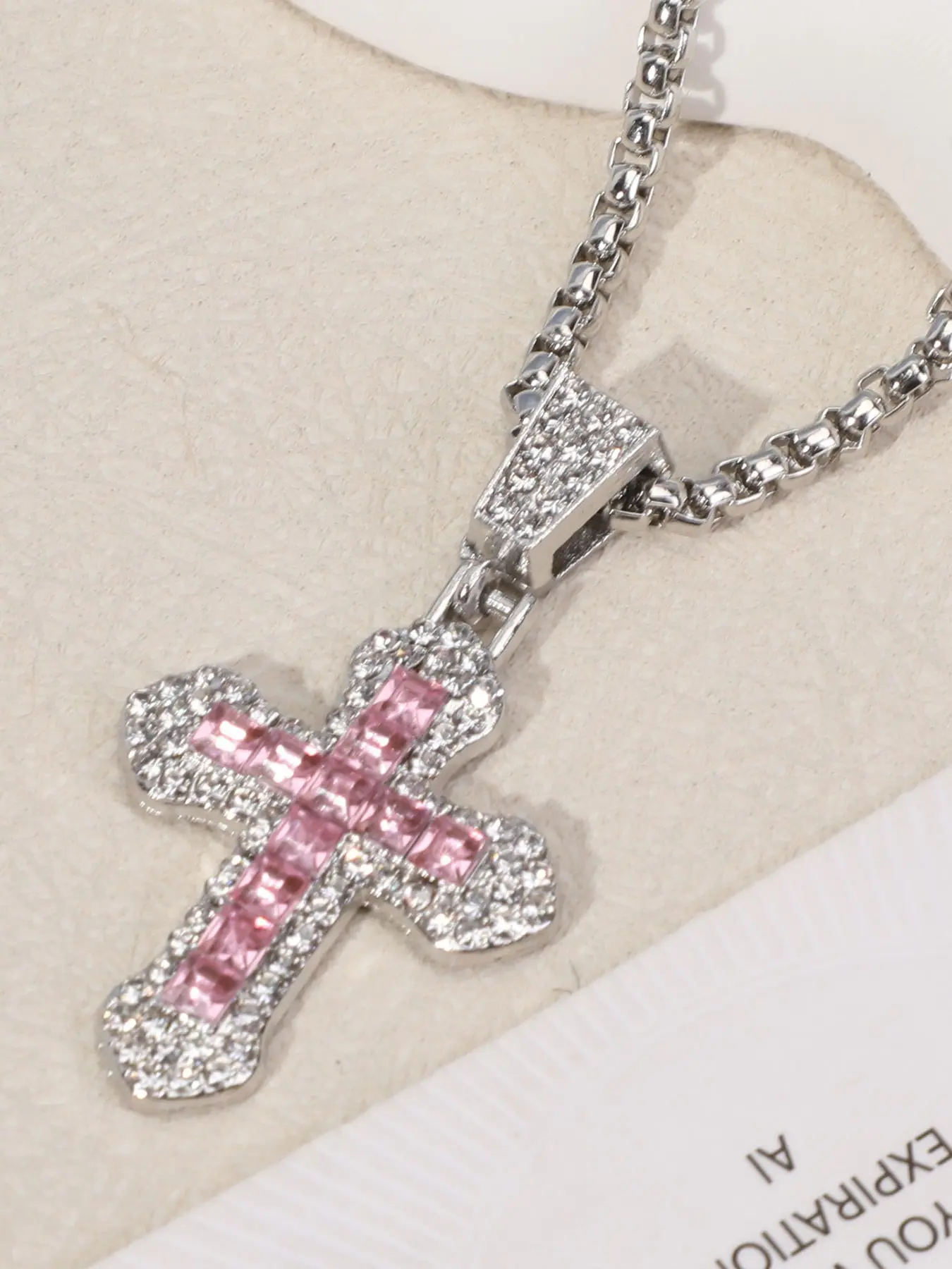 Cross Necklace Hip Hop Style Zircon Pendant Jewelry, Titanium Steel Versatile Chain, Full Diamond Inlay, Multi-Color Options, Fade-Resistant