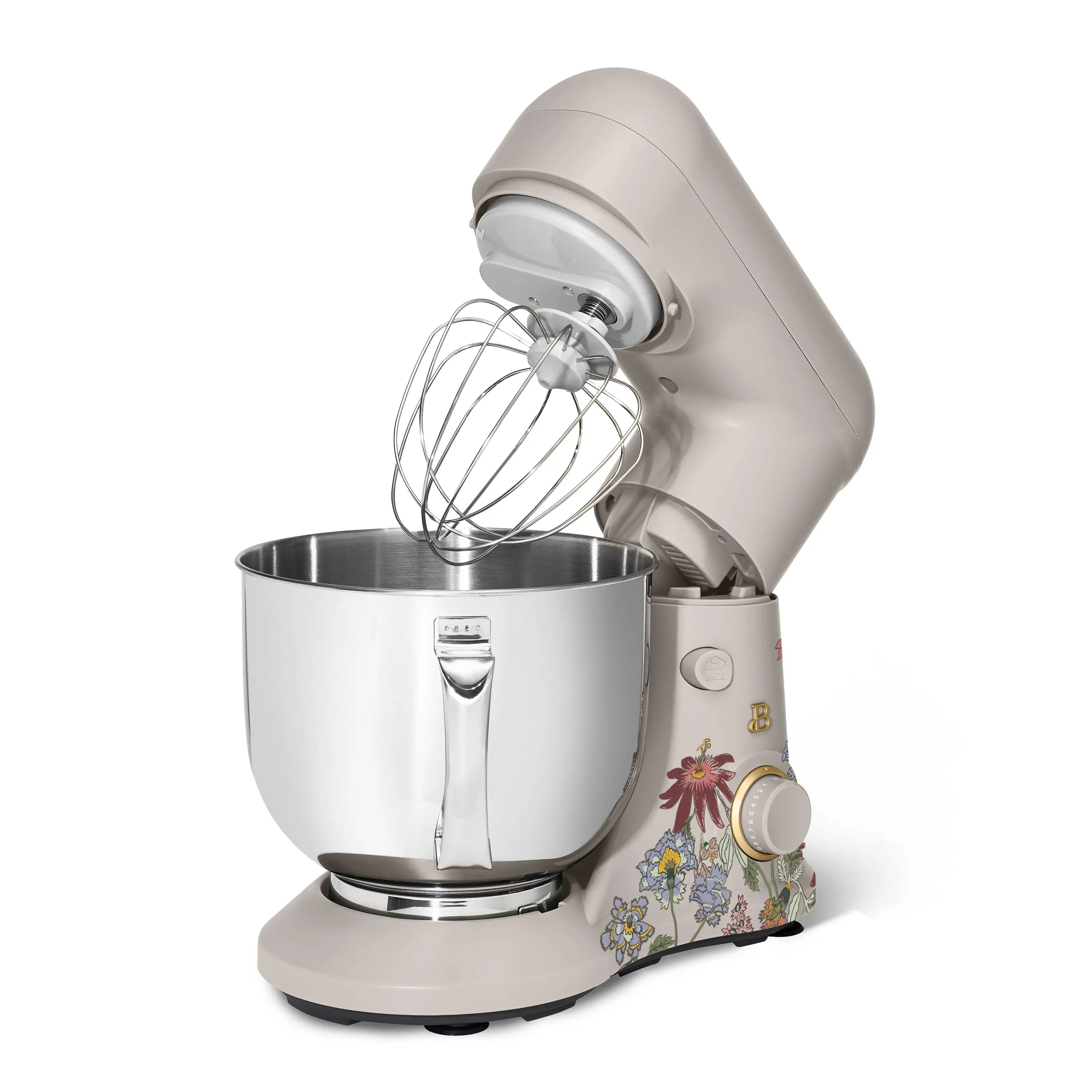 Beautiful 5.3 Qt Stand Mixer, Lightweight & Powerful with Tilt-Head, Wildflower Porcini Taupe by Drew Barrymore