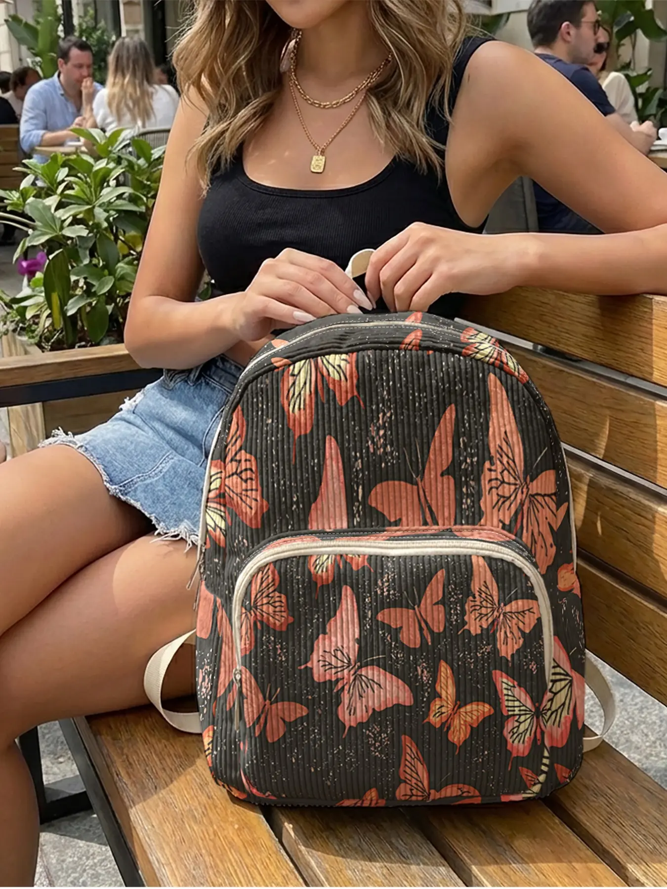 1 piece of 2D printed lady's backpack with butterfly print pattern, chenille texture + layered storage + lightweight and easy to carry|Perfect for students to go to class/shopping/short trips|Combines atmosphere with practicality