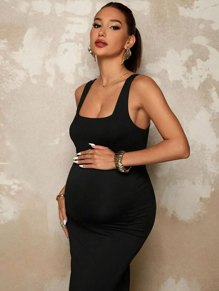 BELLAdresses Maternity Square Neck Fitted Sleeveless Elegant Dress