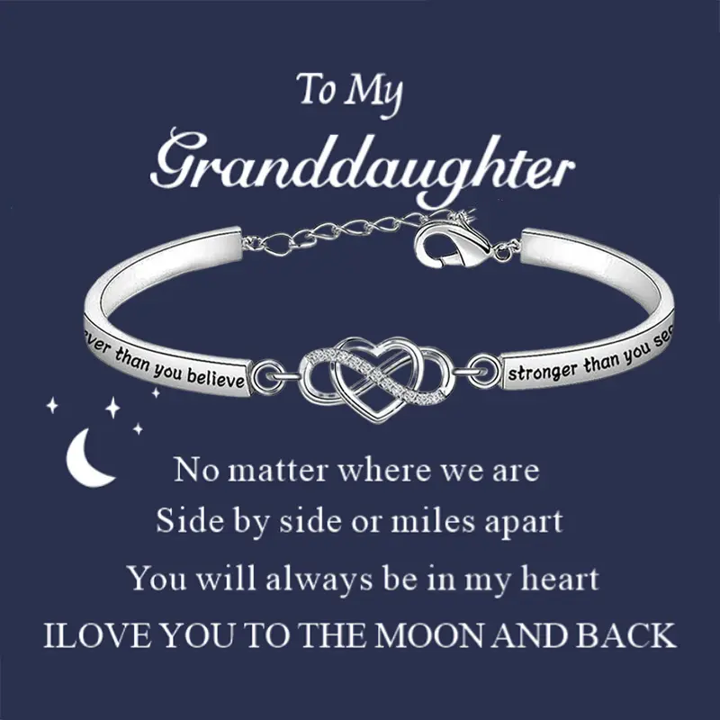 An Inspiring Bracelet for Granddaughter with Heart Pendant - "You Are Braver, Stronger, Smarter Than You Think" - Perfect Gift for Birthdays, Holidays, and Special Occasions, Granddaughter Jewelry| Elegant Writing Design| Durable Bracelet