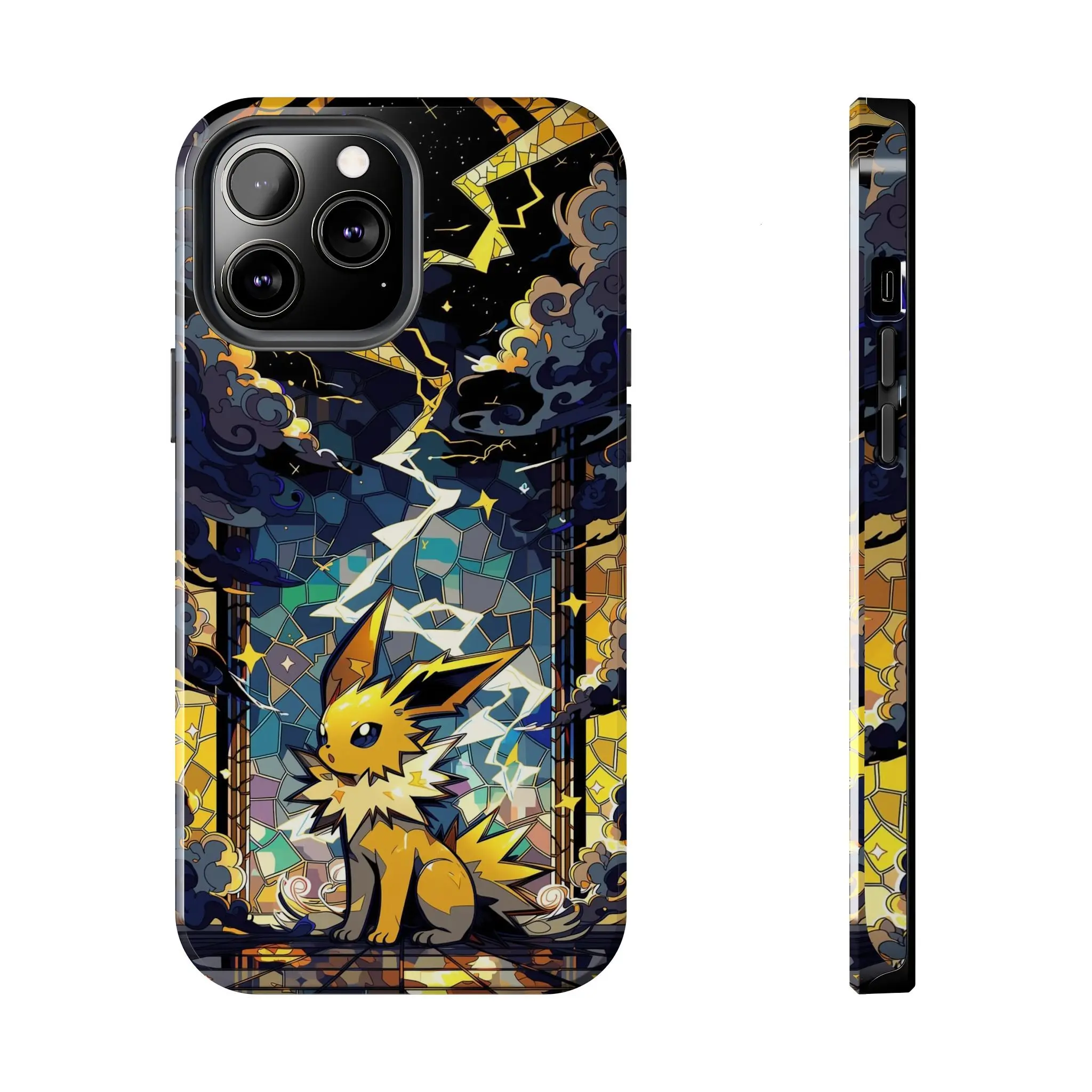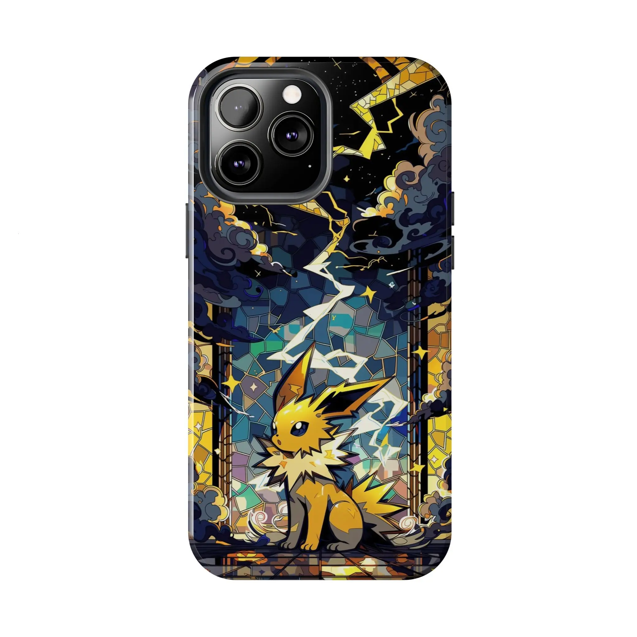 Experience the breathtaking beauty of Eevee’s evolutions with this unique Stained Glass themed case. Featuring Jolteon amidst crackling lightning and Glaceon under a starry frozen night, the design is crafted in a stunning mosaic art style. The vibrant, translucent-looking colors mimic the elegance of cathedral stained glass, making your phone a masterpiece of both light and shadow. This aesthetic blend is the ultimate luxury accessory for any Eevelution fan.
