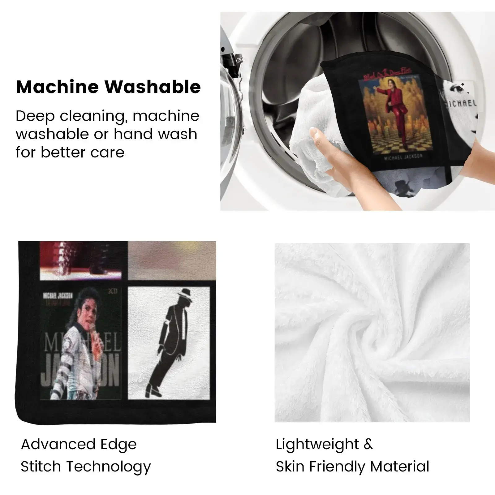 Michael Jackson King Of Pop Collage Print Flannel Blanket Cooling Blanket Homegoods Soft Cozy For Bedroom Living Room Sofa For MJ Fans Music Lovers Perfect Gift