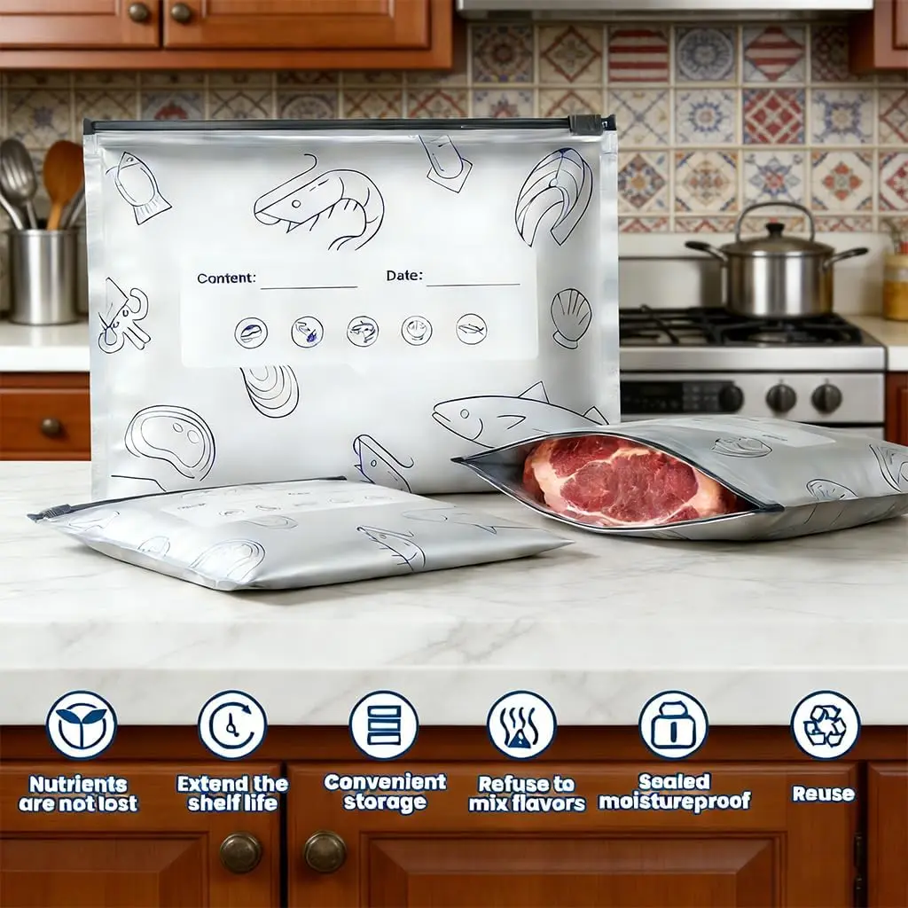 ·Stand Up Bottom: Aluminum freezer bags can stand upright on their own, which makes filling them so much easier and stack them in the fridge or freezer