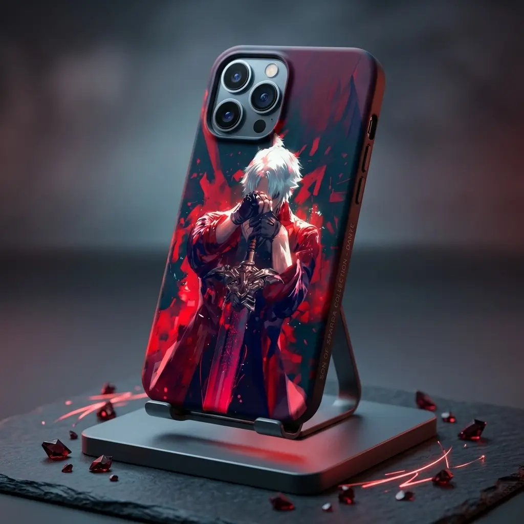 5. Demon Hunter Anime Phone Case, Dark Fantasy Splash Art Cover, Red Aesthetic Warrior iPhone Case, Gaming Style Protective Case