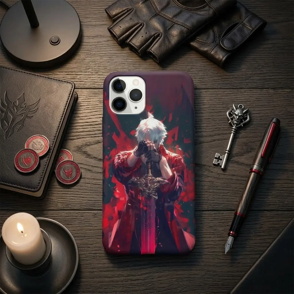 Demon Hunter Anime Phone Case, Dark Fantasy Splash Art Cover, Red Aesthetic Warrior iPhone Case, Gaming Style Protective Case