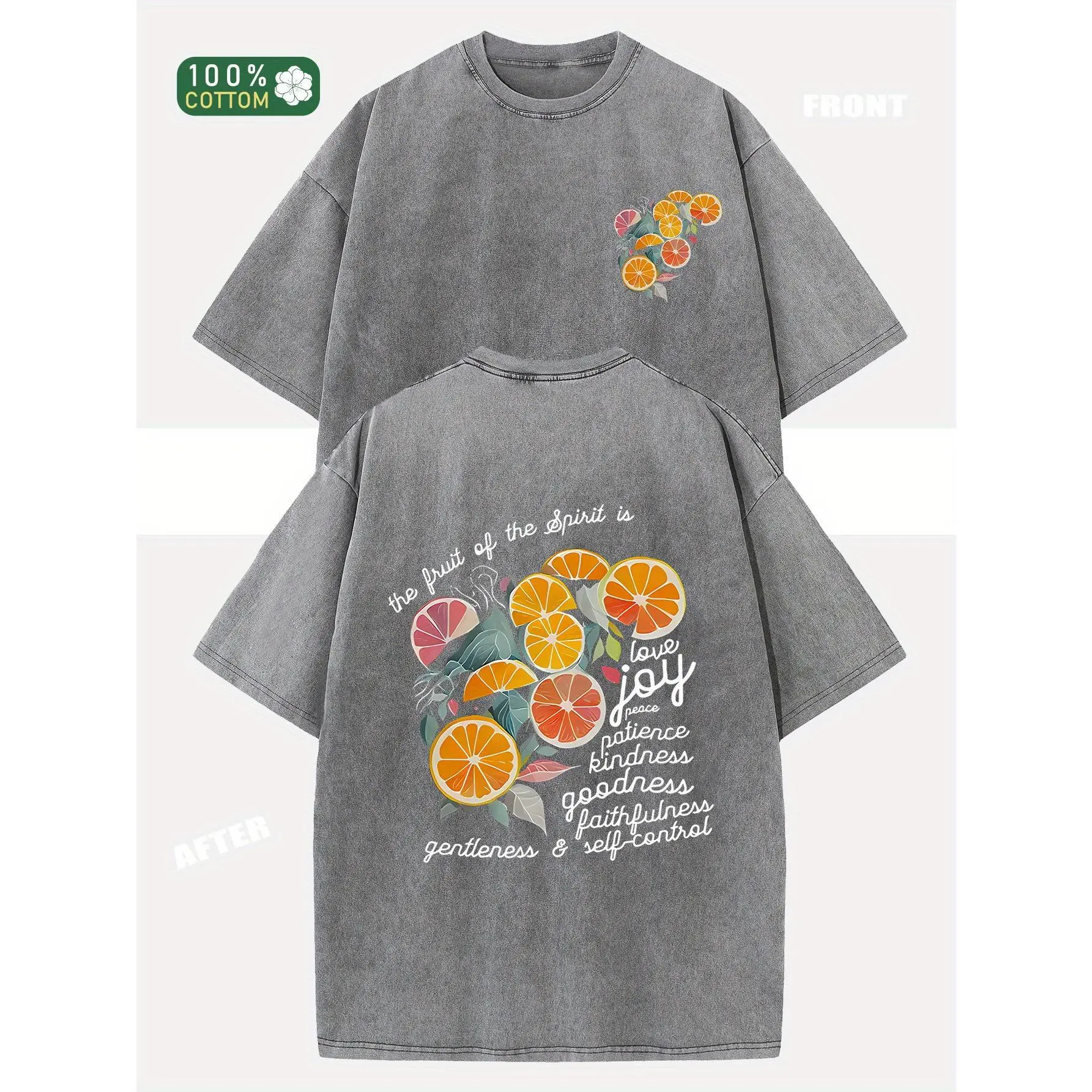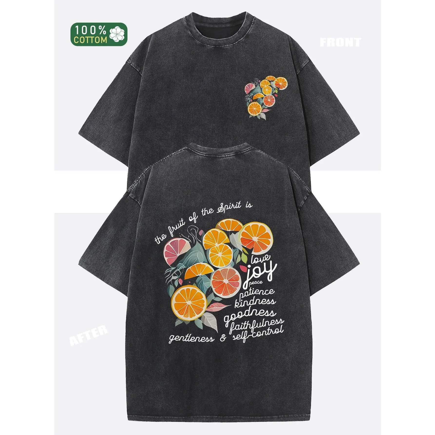 Washed Cotton T-Shirt 250g Heavyweight Soft Graphic Tee The Fruit of The Spirit is Love Vintage Double-Sided Print Unisex Casual Daily Wear Loose Fit Spring Summer 2026 New
