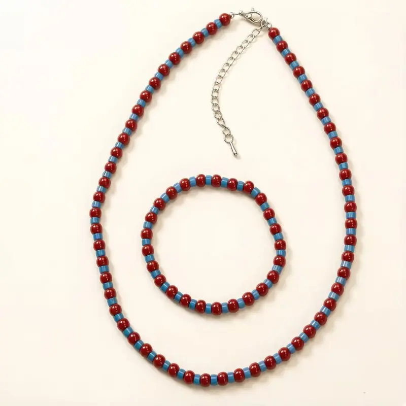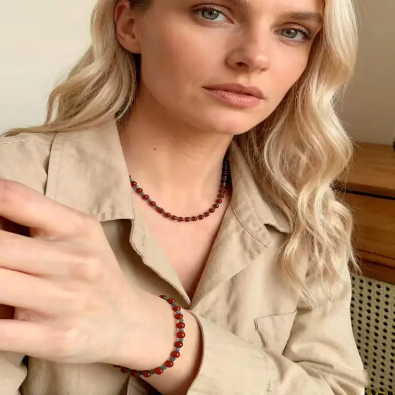 Step into the season with a touch of vintage charm.This stunning Red Agate Necklace & Bracelet Set is your new go-to accessory for effortless elegance.