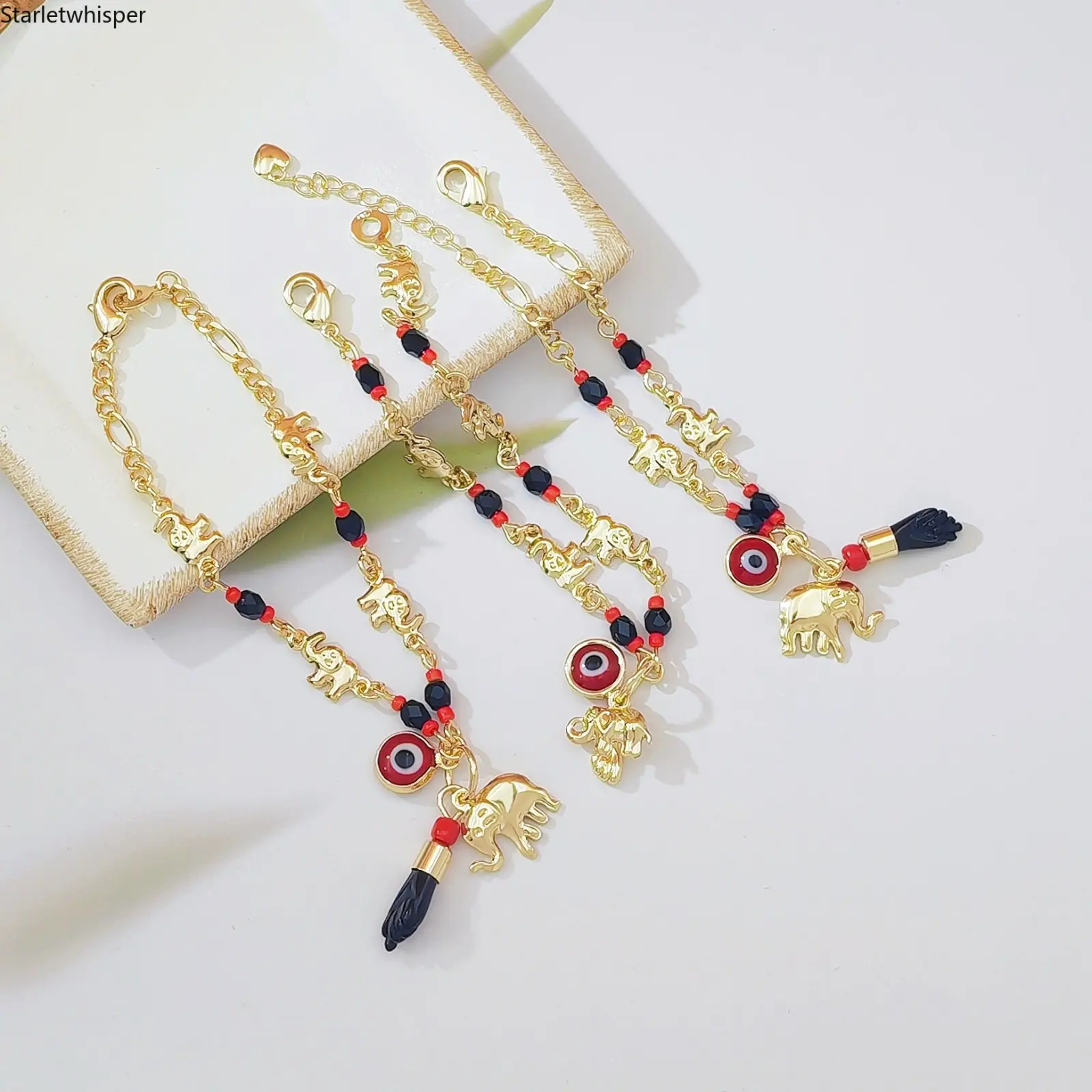 Boho Evil Eye & Lucky Elephant Anklet Bracelet Set for Women Cute Cartoon Beach Jewelry Trendy Vacation Style Stackable Foot & Wrist Accessories for Summer Beach Party Daily Outfits