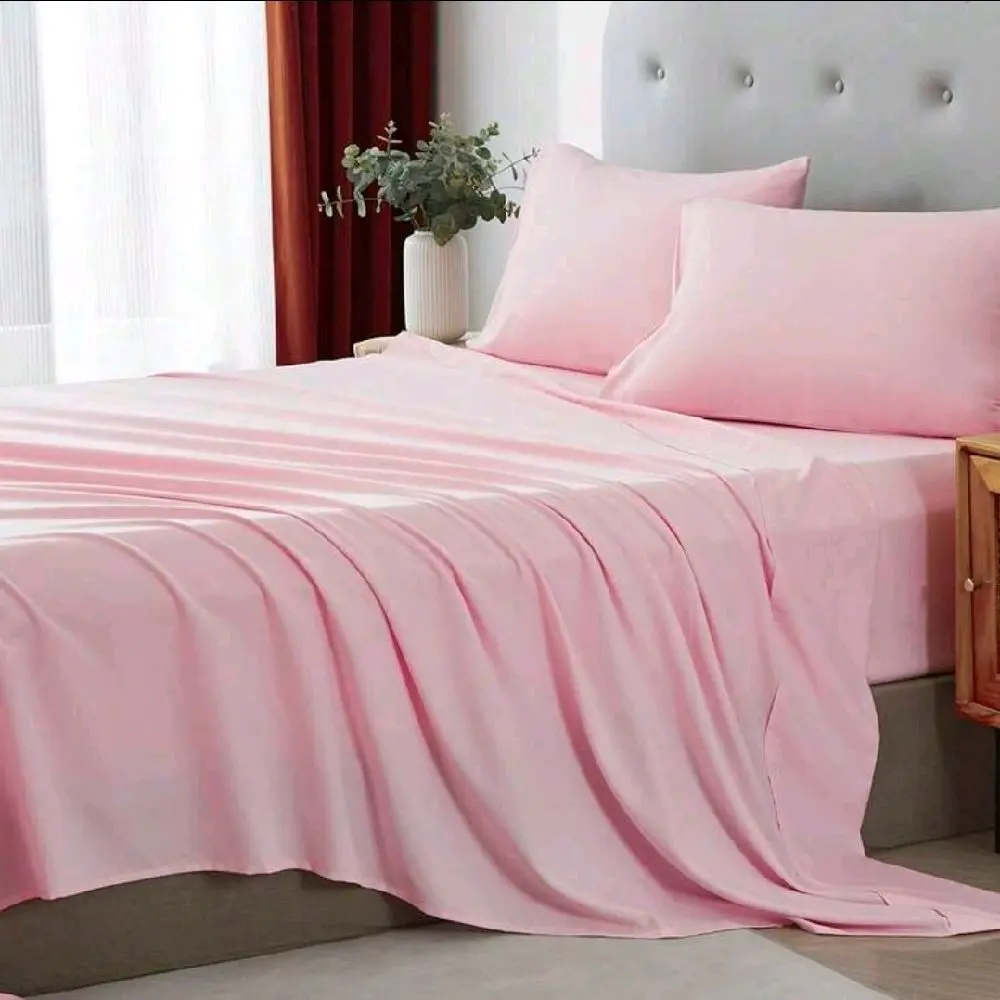The 4pcs set is versatile, suitable for all seasons. The 100% polyester material provides a soft and comfortable feel. It's durable, ensuring long-lasting use. The set includes a flat sheet, a fitted sheet, and two pillowcases. It's an excellent choice for room decor, adding a touch of elegance to your space.