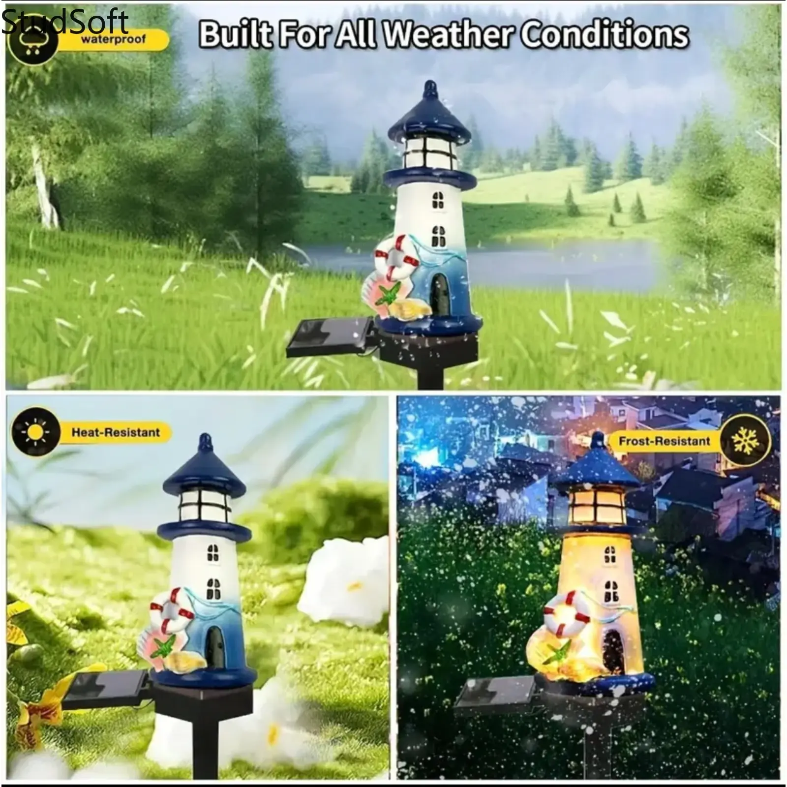 5. 2026 New Solar Powered Lighthouse Garden Lights, LED Resin Nautical Pathway Lights, Outdoor Lawn Decor