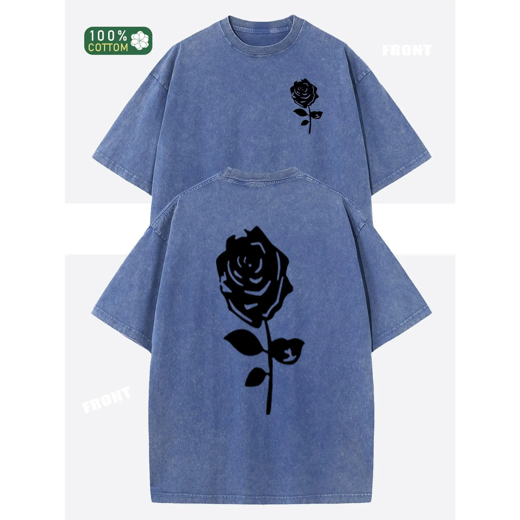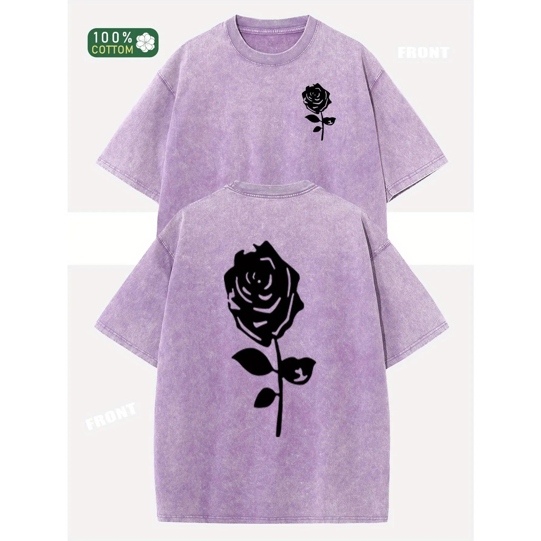Oversized Rose Print Cotton T-Shirt Vintage Washed Streetwear Basic Loose Fit Unisex Summer Top Soft Breathable Daily Casual Outfit TikTok Made Me Buy It