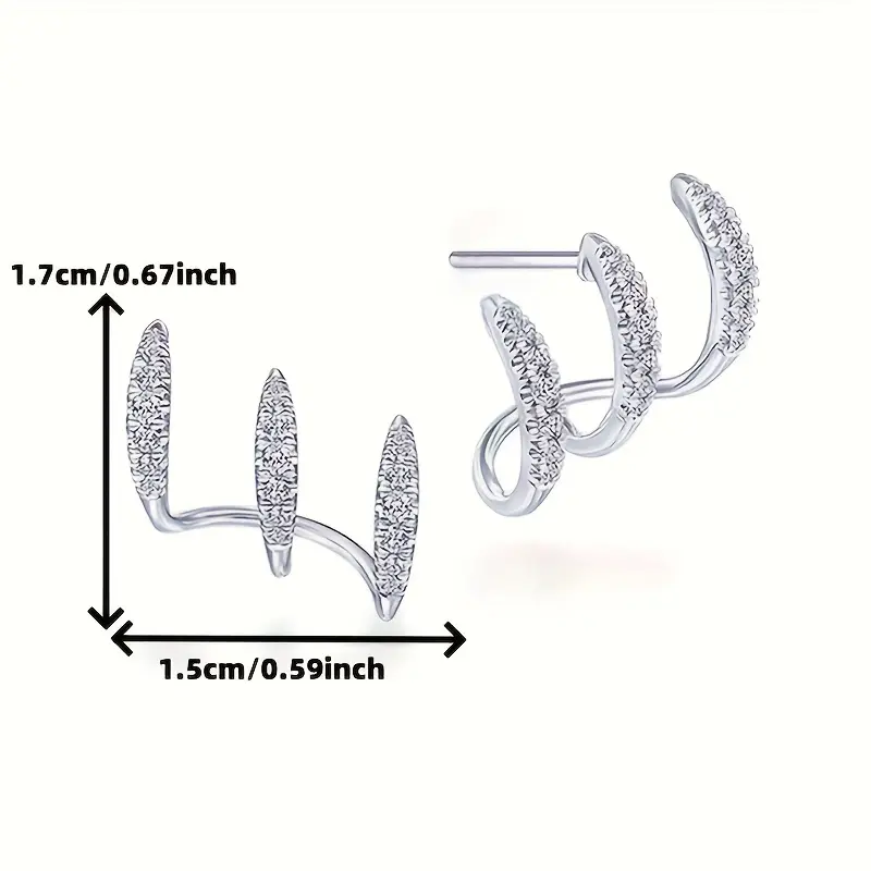 925 Silver Geometric Stud Earrings with Cubic Zirconia, Sparkling 3-Prong Design, Hypoallergenic Unisex Ear Jewelry, Jewelry for Daily Wear & Parties, Elegant Daily & Party & Graduation Gift for Men & Women