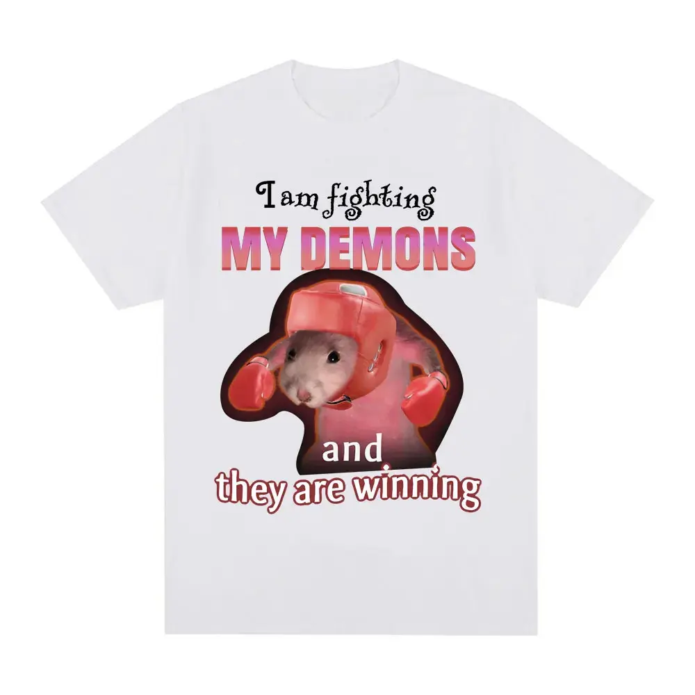 5. Funny I Am Fighting My Demons and The Are Winning Rat Meme T-shirt Fashion Creative T Shirts Short Sleeve Oversized T-shirts
