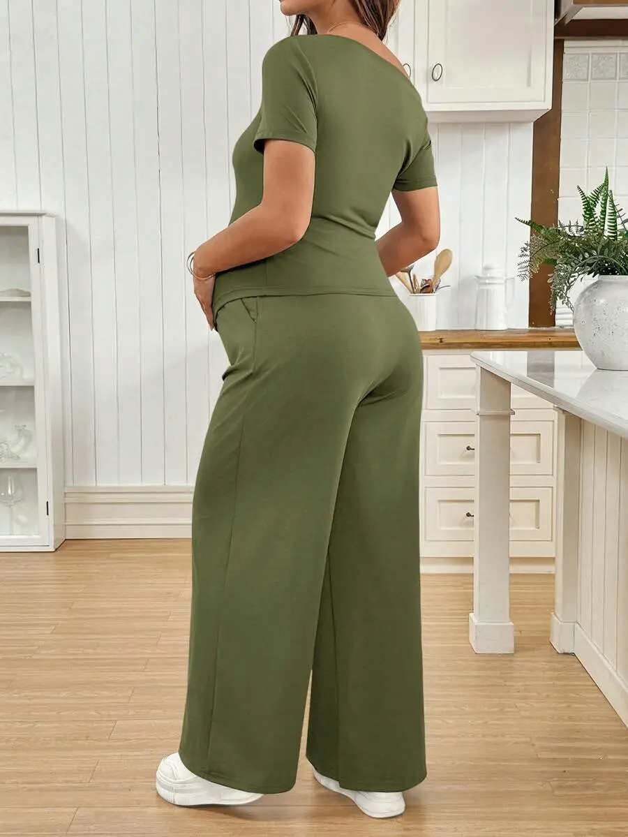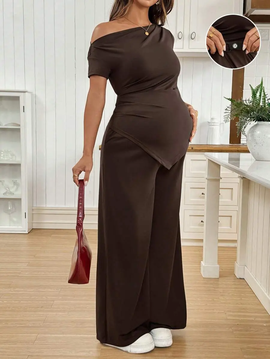 ZENIE Beach Relaxed Solid Hue Side Slit Bandeau Long Trousers Pregnancy Duo Clean Beauty