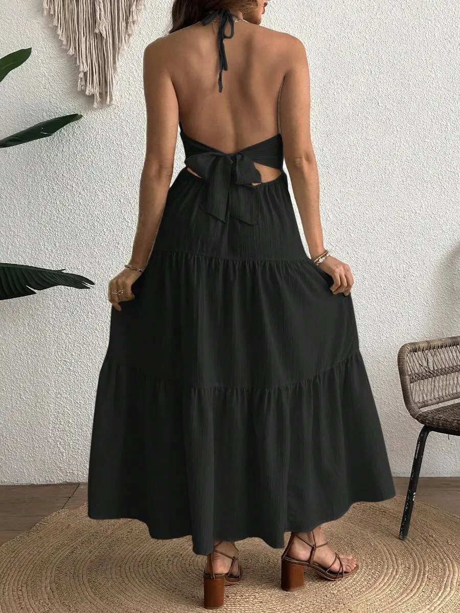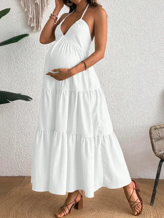ELARA Boho Style Halter Neck Sundress For Expecting Moms Open Design Fashionable Y2K Look