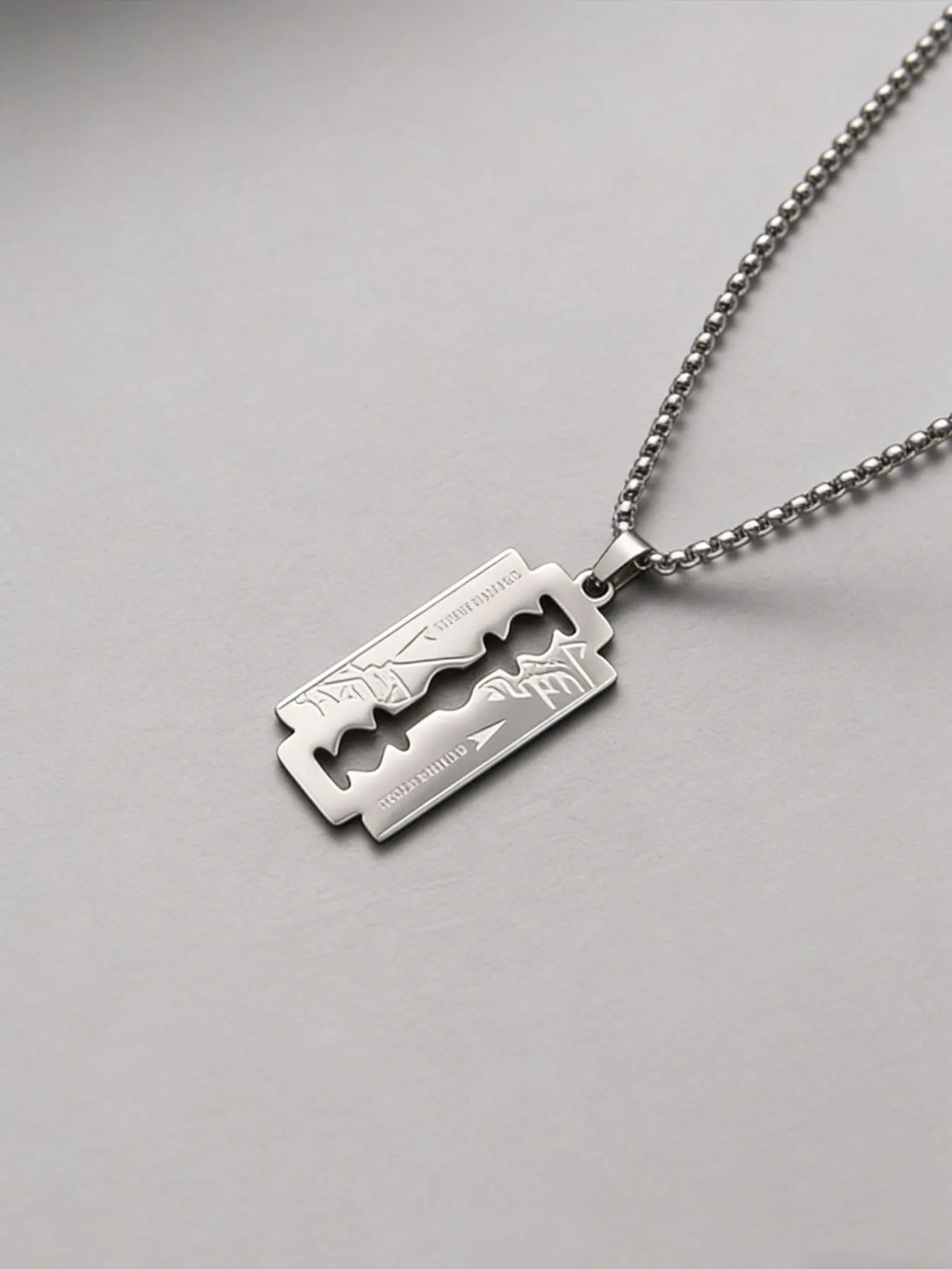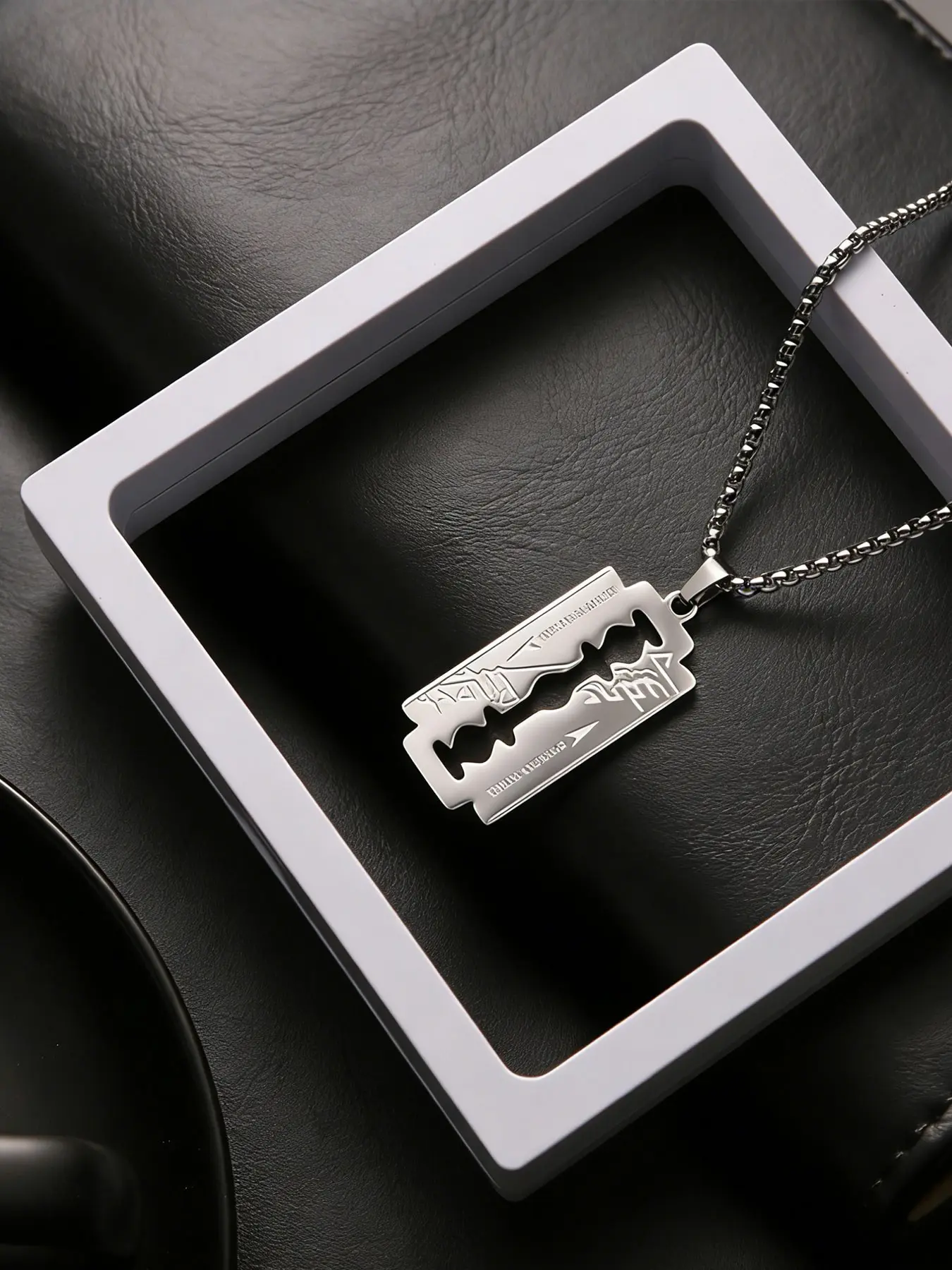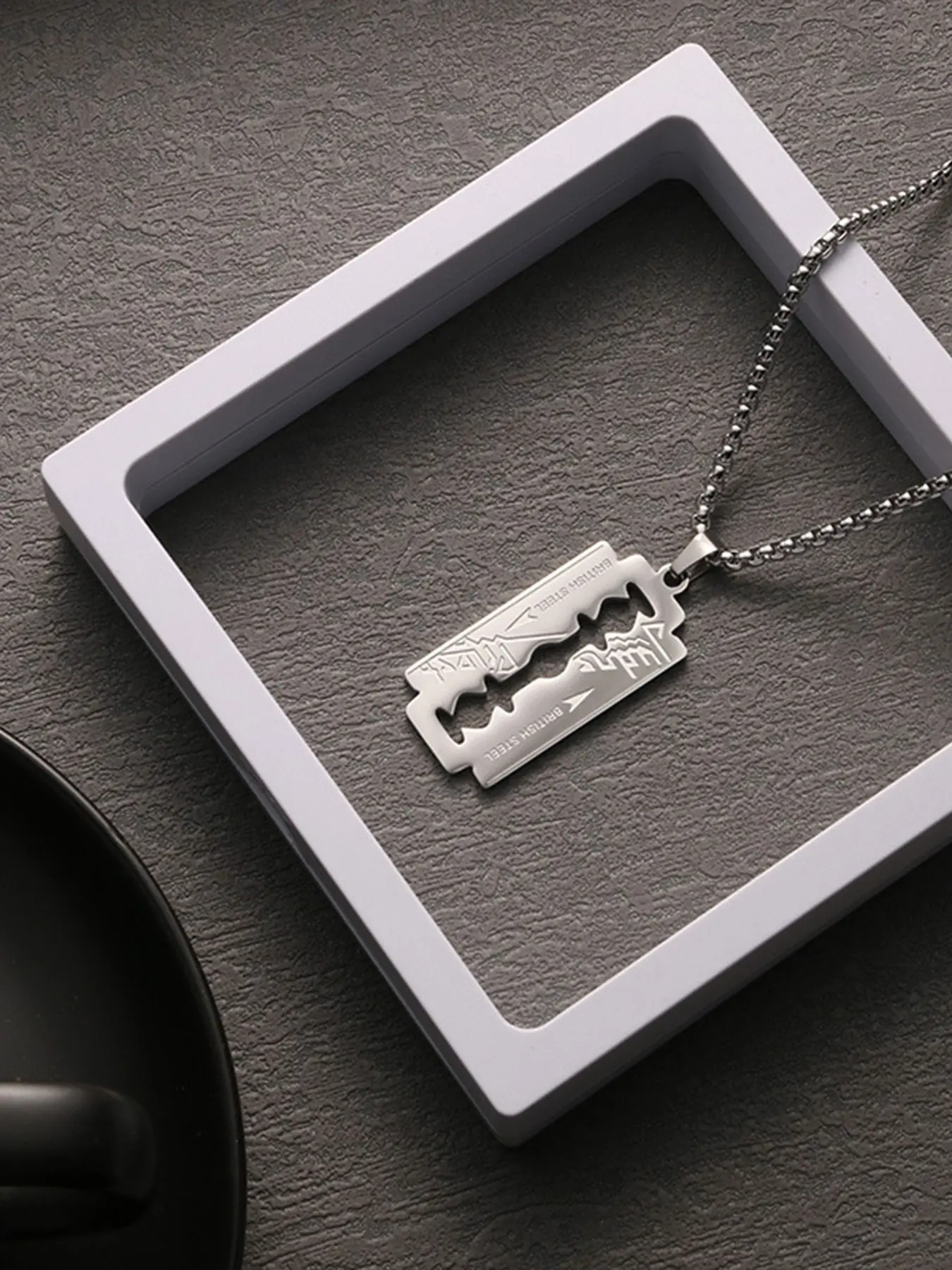 Punk Style Razor Blade Pendant Necklace, Unisex Fashion Accessory, Trendy Men's Shaving Knife Charm, Unique Personality Jewelry