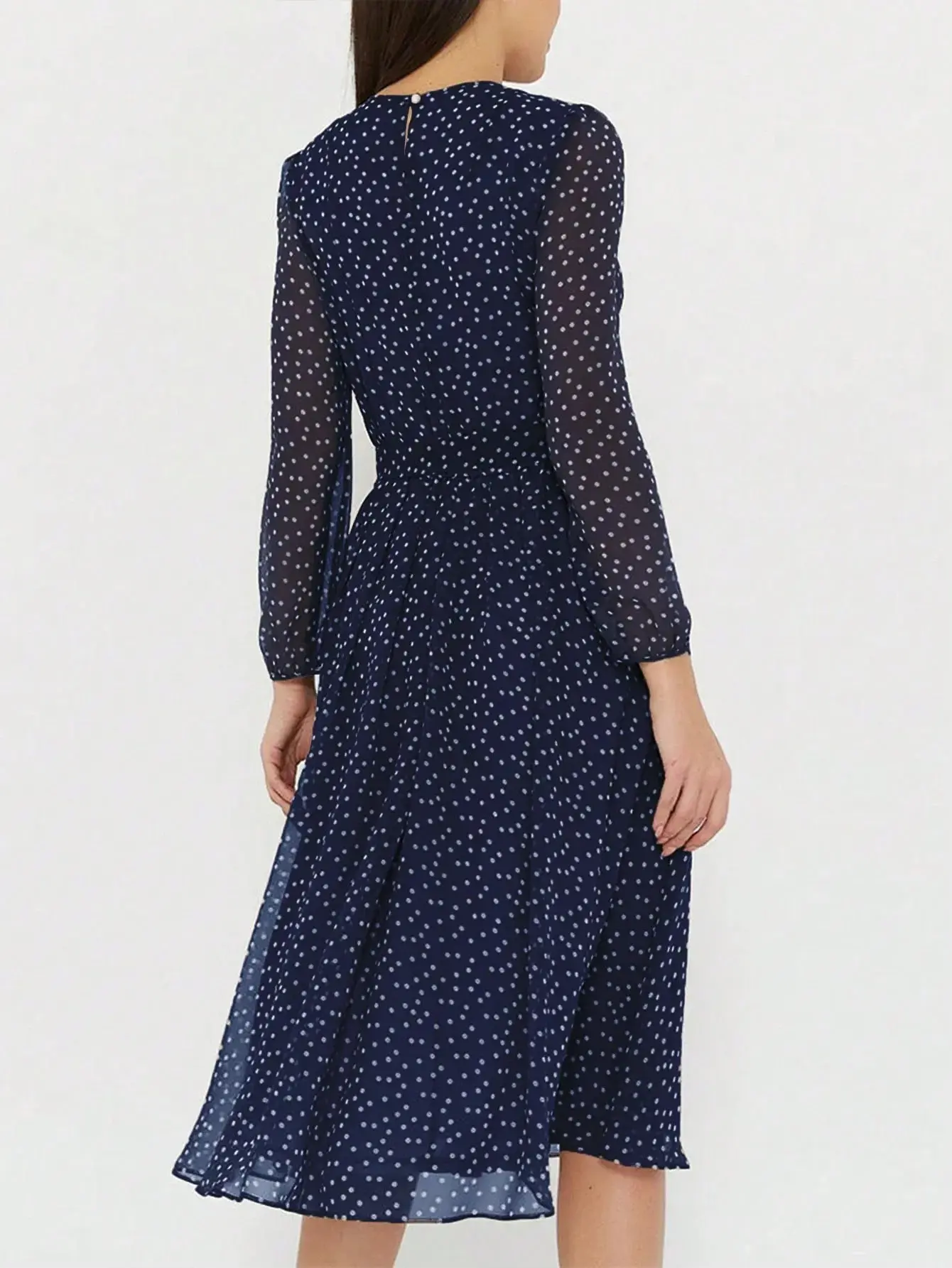 This polka dot midi dress has that soft, feminine feel that moves beautifully with every step. The silhouette is relaxed but still flattering, with a defined waist and airy fabric that makes it perfect for everyday moments or dressed-up plans.