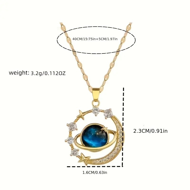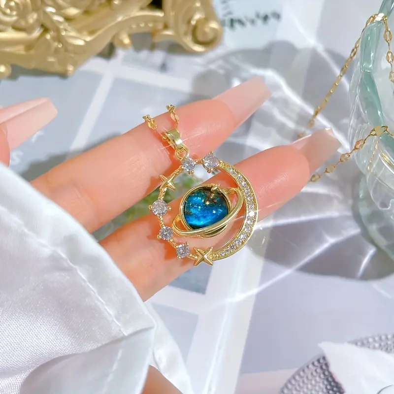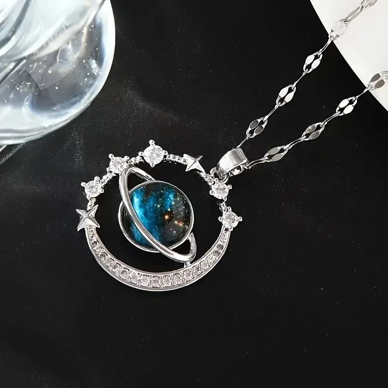 Elegant Blue Planet Pendant Necklace - Luxurious Starry Sky Design, Sparkling Accents, Suitable for New Year and Valentine's Day Gifts, Couple's Necklace, Teen Necklace