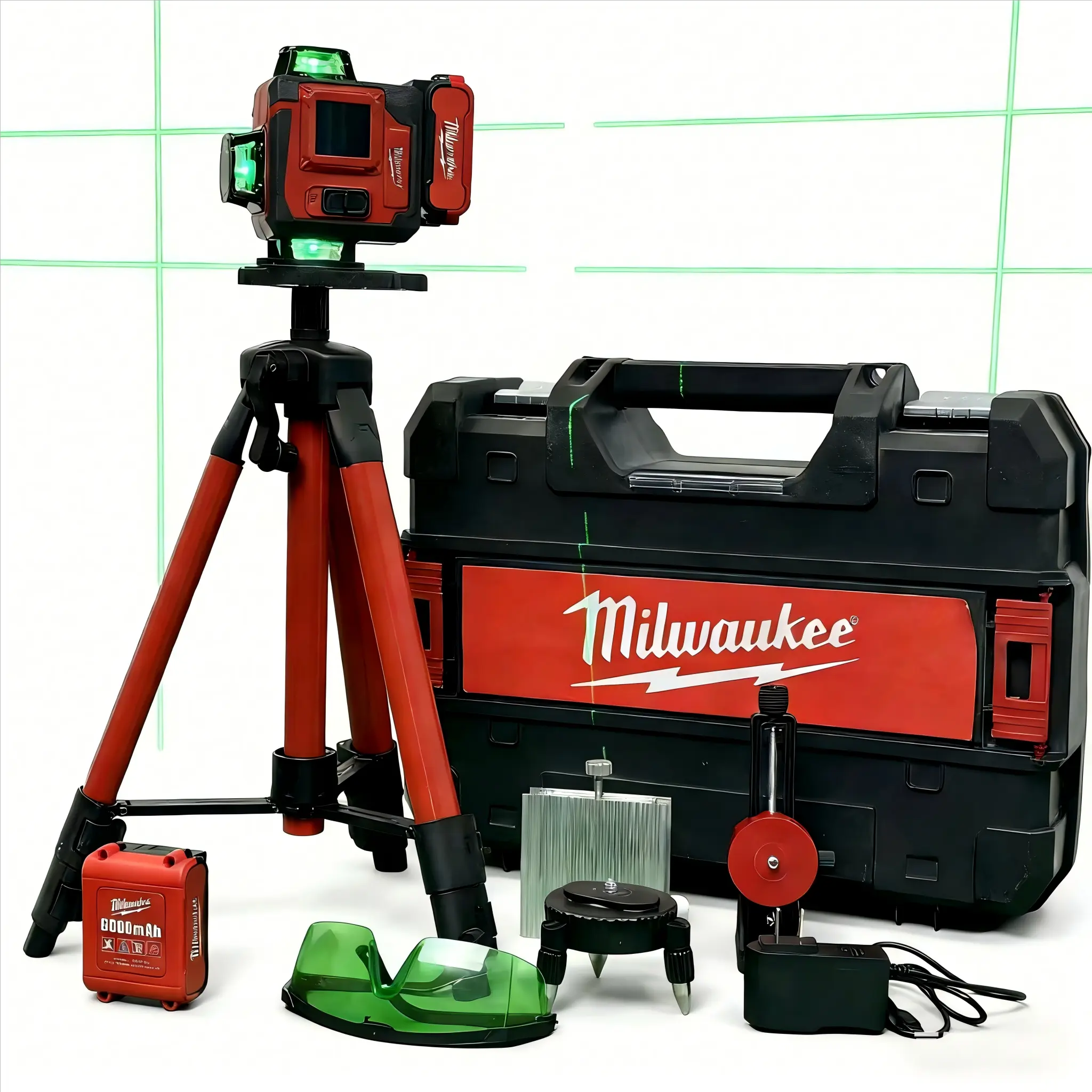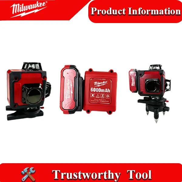 Milwaukee 16‑Line Green Laser Level Self‑Leveling Tool Kit with 6000mAh Rechargeable Battery – 360° Horizontal and Vertical Cross Projection for Construction, Remodeling and Site Layout