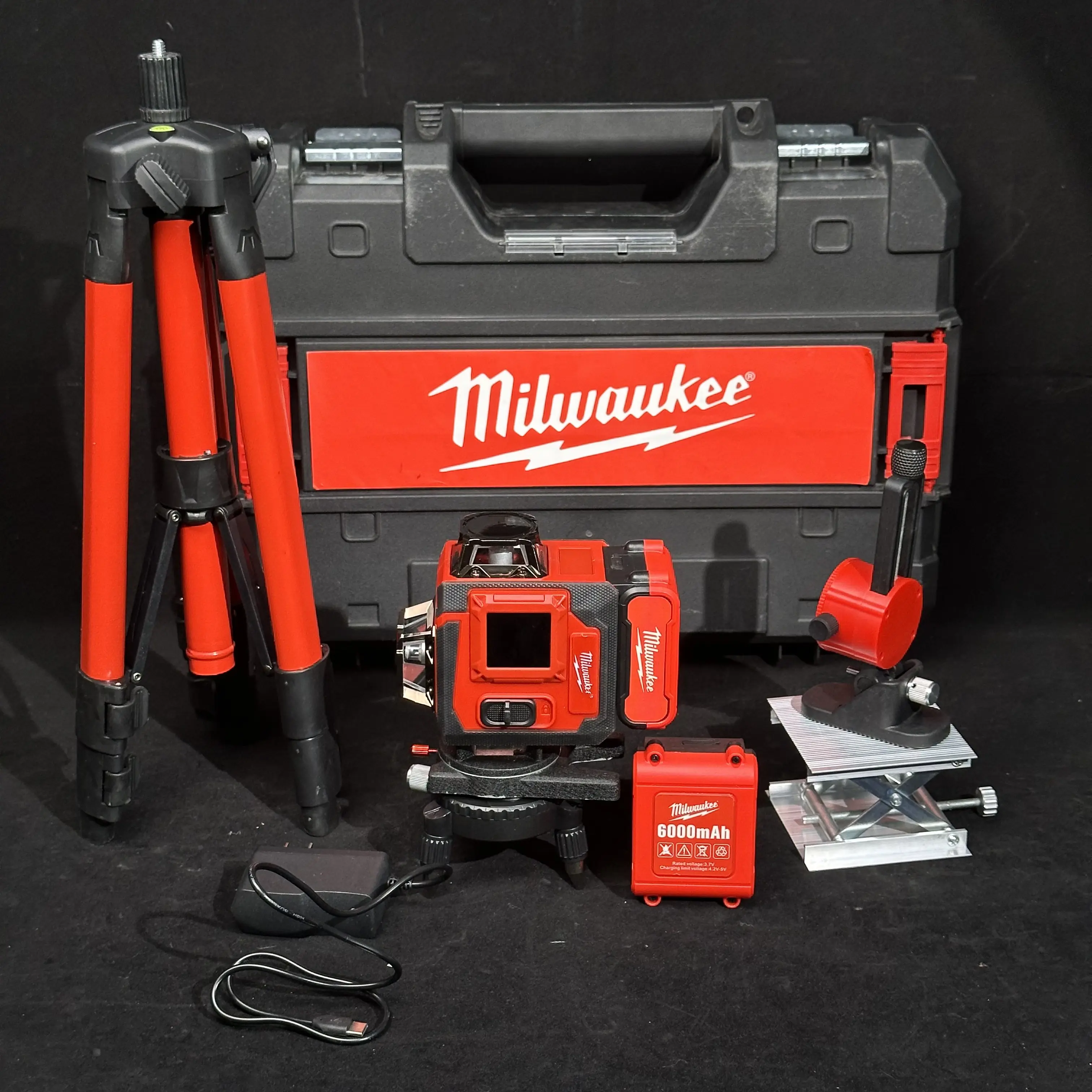 16 green laser lines + 360° horizontal & vertical projection + self‑leveling + 6000mAh battery + charger + carrying case – all in one box. Perfect for construction, remodeling, and site layout. No dim red lines. Just bright, full‑room accuracy.