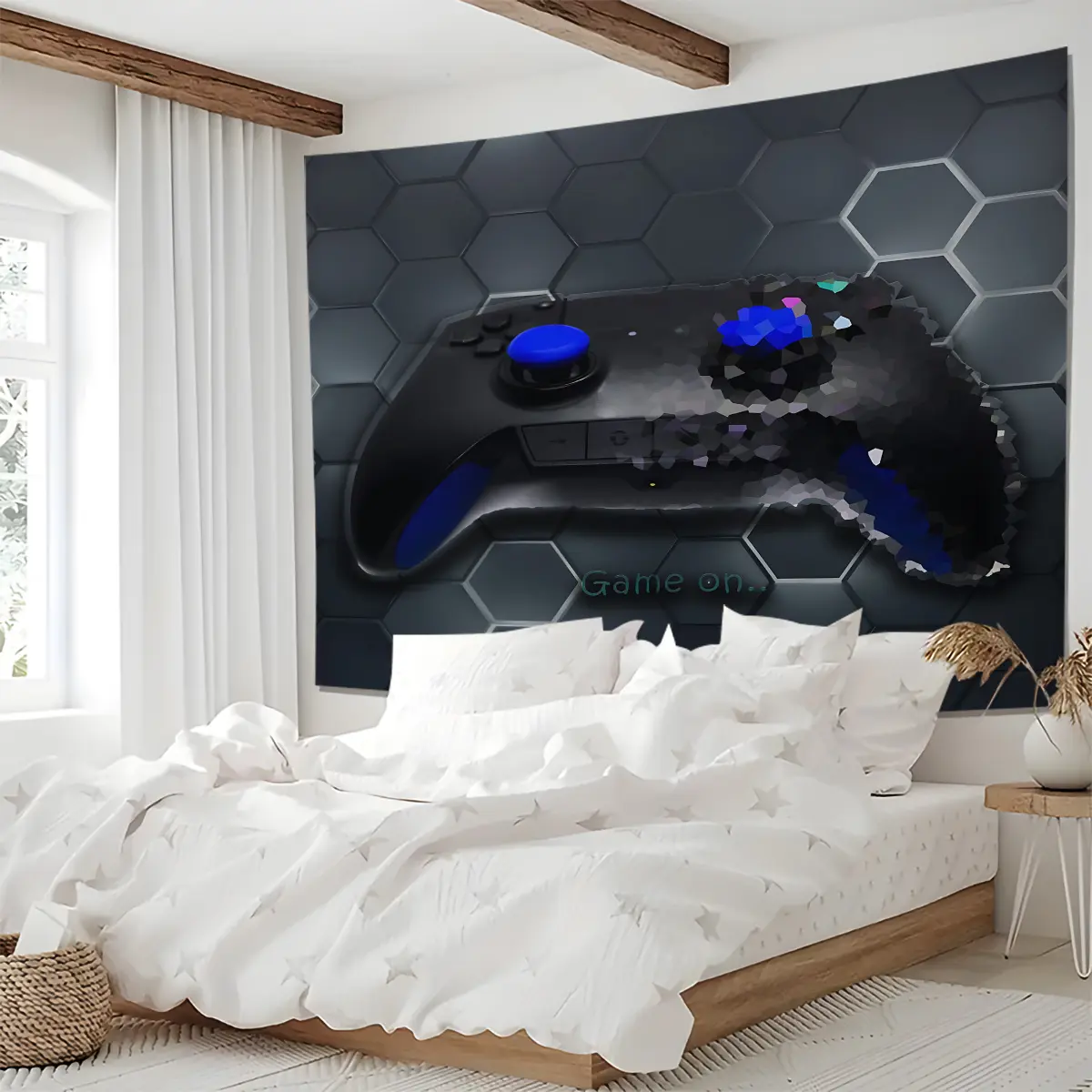 Gamer Game Controller 3D Print Tapestry, Cool Tech Style, Durable HD Printed, for Boys Bedroom, Gaming Room, Dorm, Homestay Wall Decor