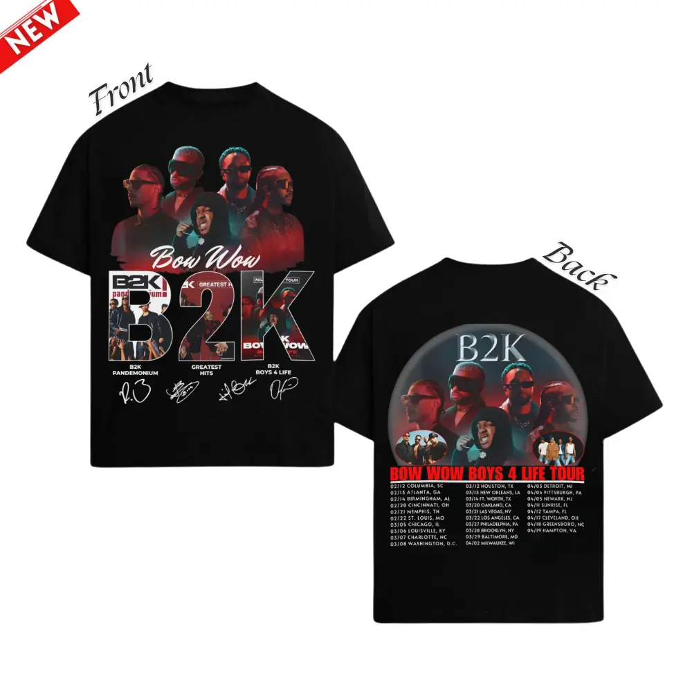 Back when hits were timeless This B2K x Bow Wow Boys 4 Life Tour 2026 tee features a bold Y2K collage front and full tour dates on the back. Perfect for throwback lovers, concert outfits, and streetwear fits.