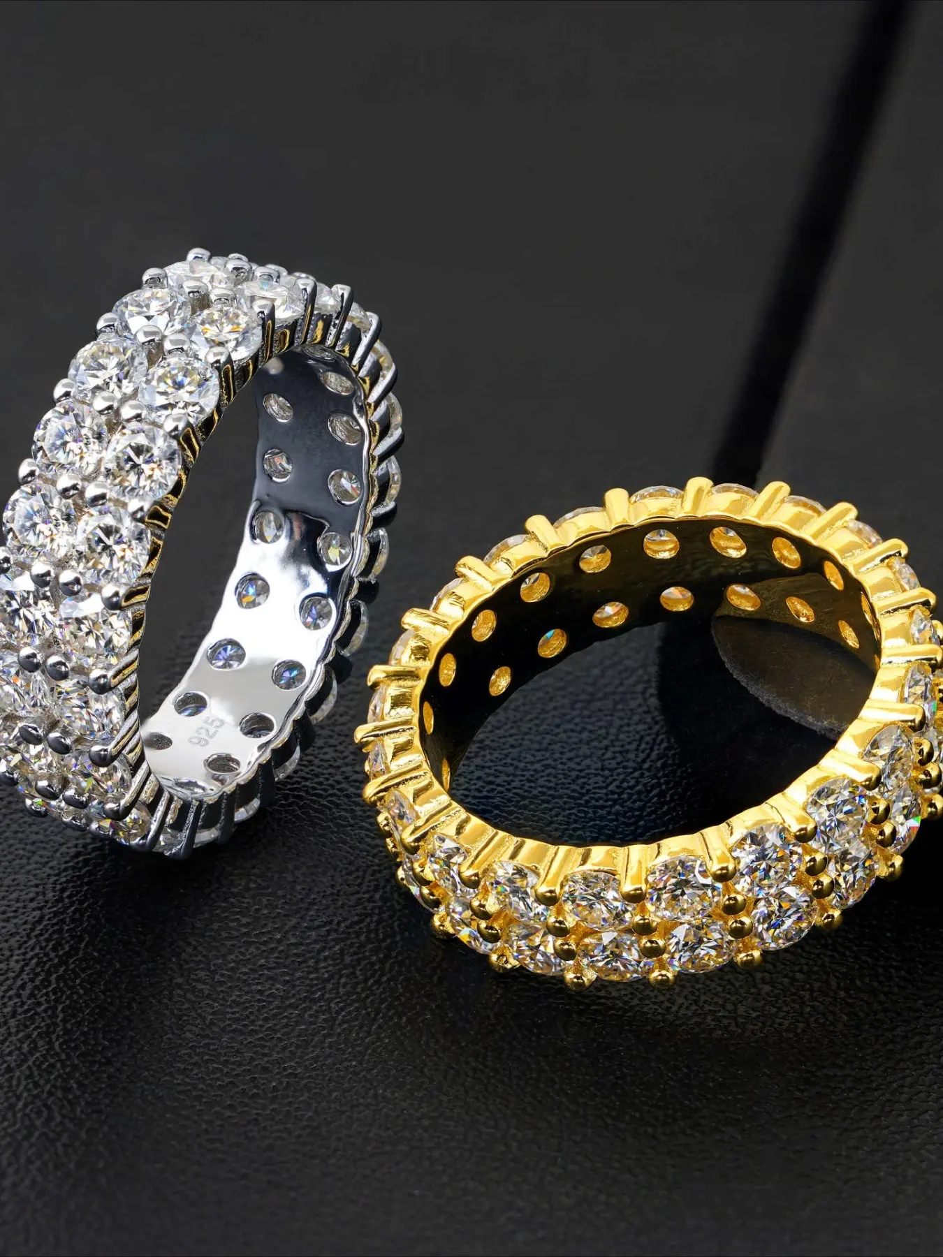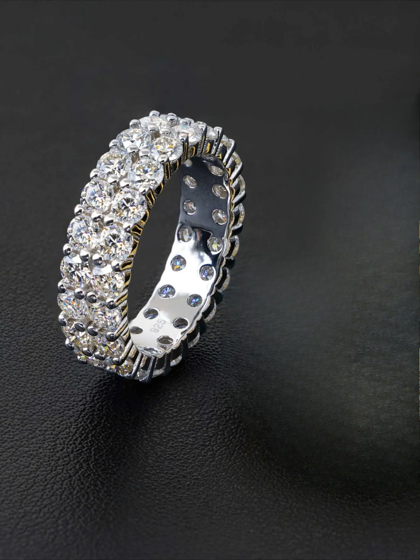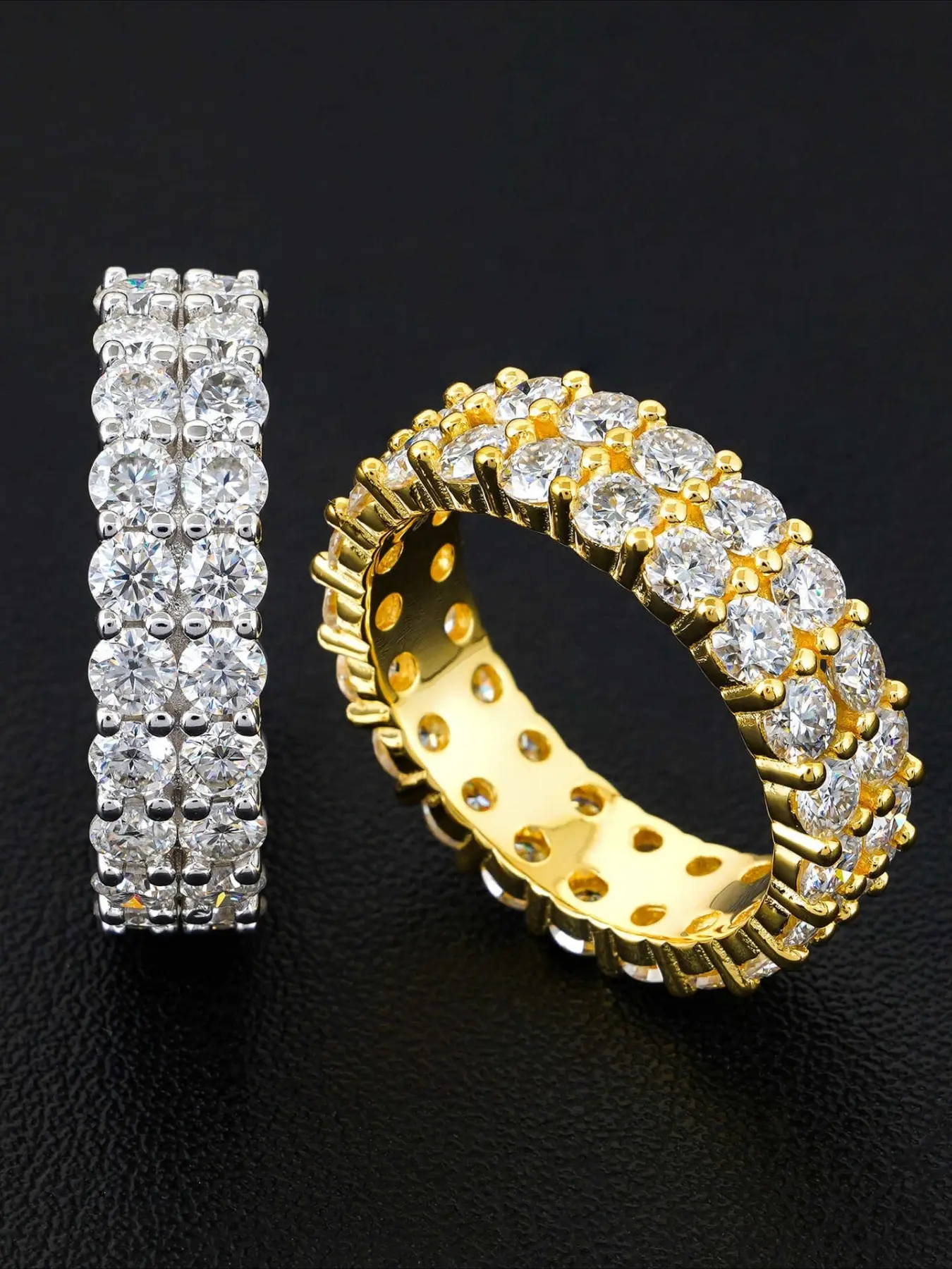 Father's Day Mother's Day ring gift, fashionable and personalized light luxury double-row full-set chilled full diamond ring super flash ring