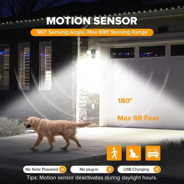 🛡️ Wide Sensing Angle: With a 180-degree sensing angle, it detects motion up to 69ft away. The sensitive motion sensor ensures accurate detection. The adjustable timer can be set for 1, 3, or 10 minutes, offering flexibility for various needs.