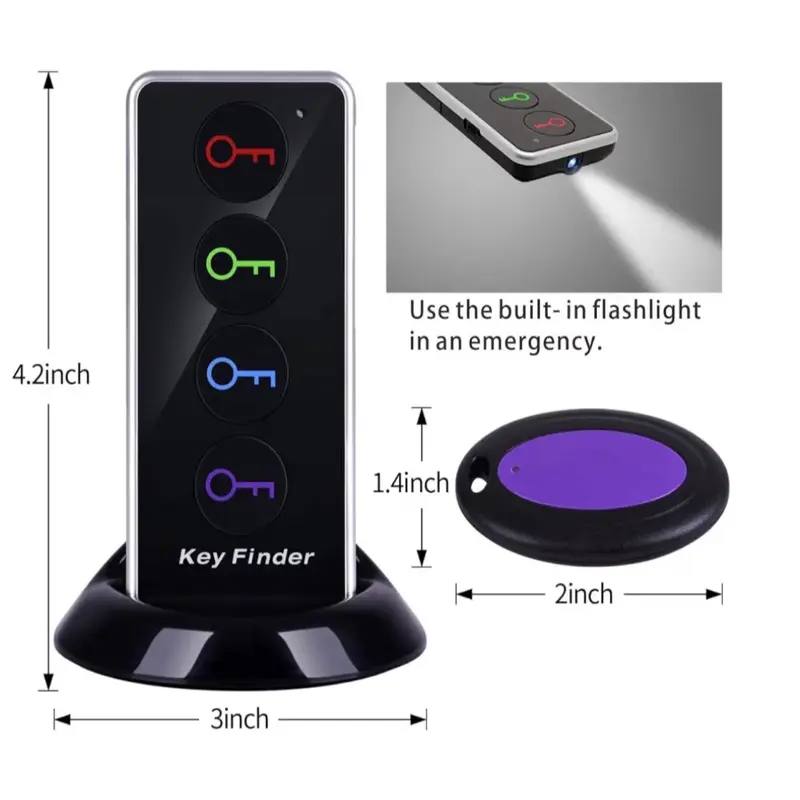 Stop the frantic morning searches and reclaim your time. Whether it’s your keys, wallet, remote, or pet’s collar, this sleek 4-in-1 Wireless Key Finder ensures your most important items are always just a button press away.