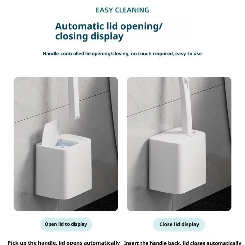 d]: The convenient design allows for easy installation on walls, saving space and enhancing accessibility. [Multiple Tools]: Features various cleaning devices, such as a toilet brush holder and wall-mounted urinal cleaner, for comprehensive cleaning. [Specialized Components]: Comes equipped with a basin cleaning system and tub drainage cleaner, addressing diverse cleaning needs efficiently. [Disposable Heads]: Includes replaceable cleaning heads for hygienic and effective sanitation, simplifying maintenance and minimizing germs.