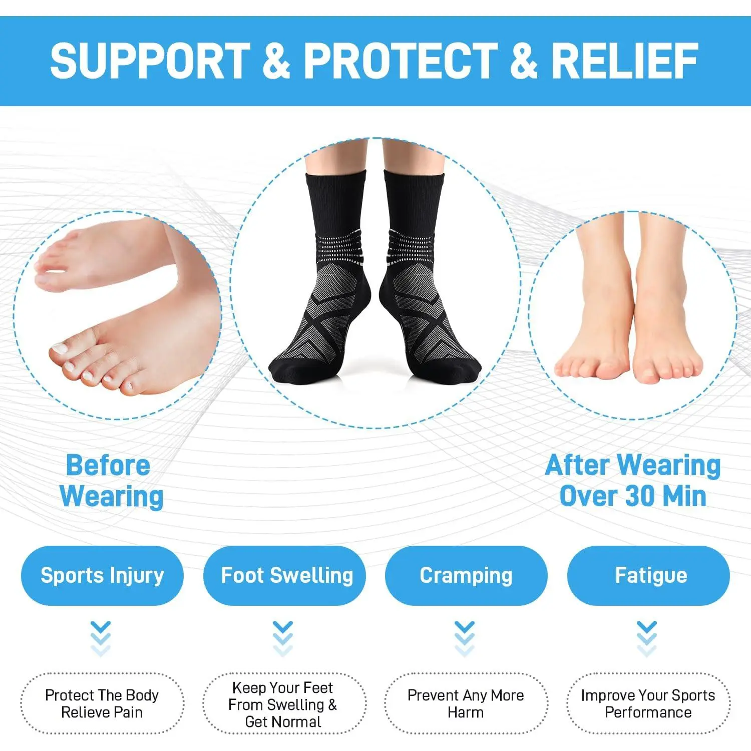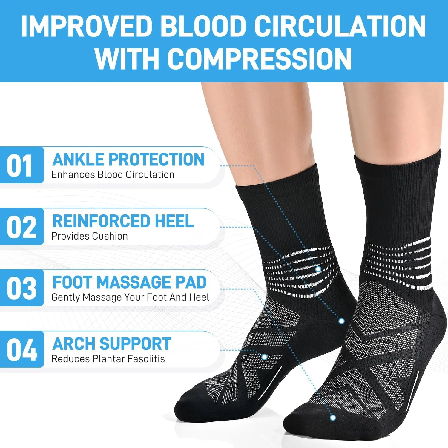 Compression Ankle Support Crew Socks Men Women Coolmax Wicking Plantar Fasciitis Relief Running Hiking Socks 3 Pairs