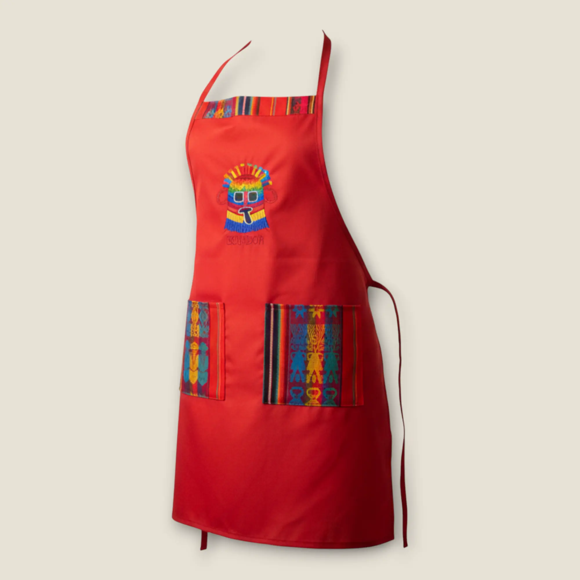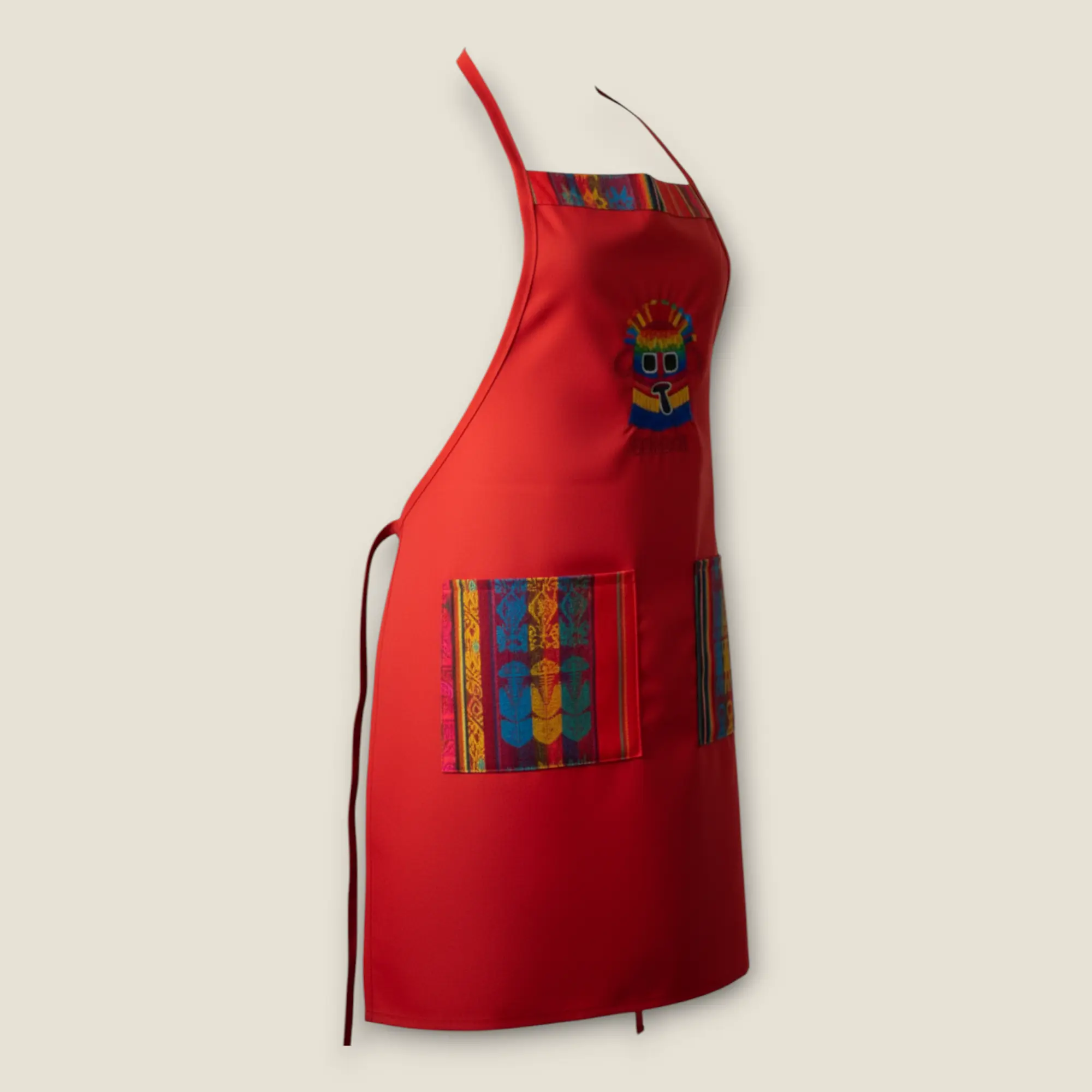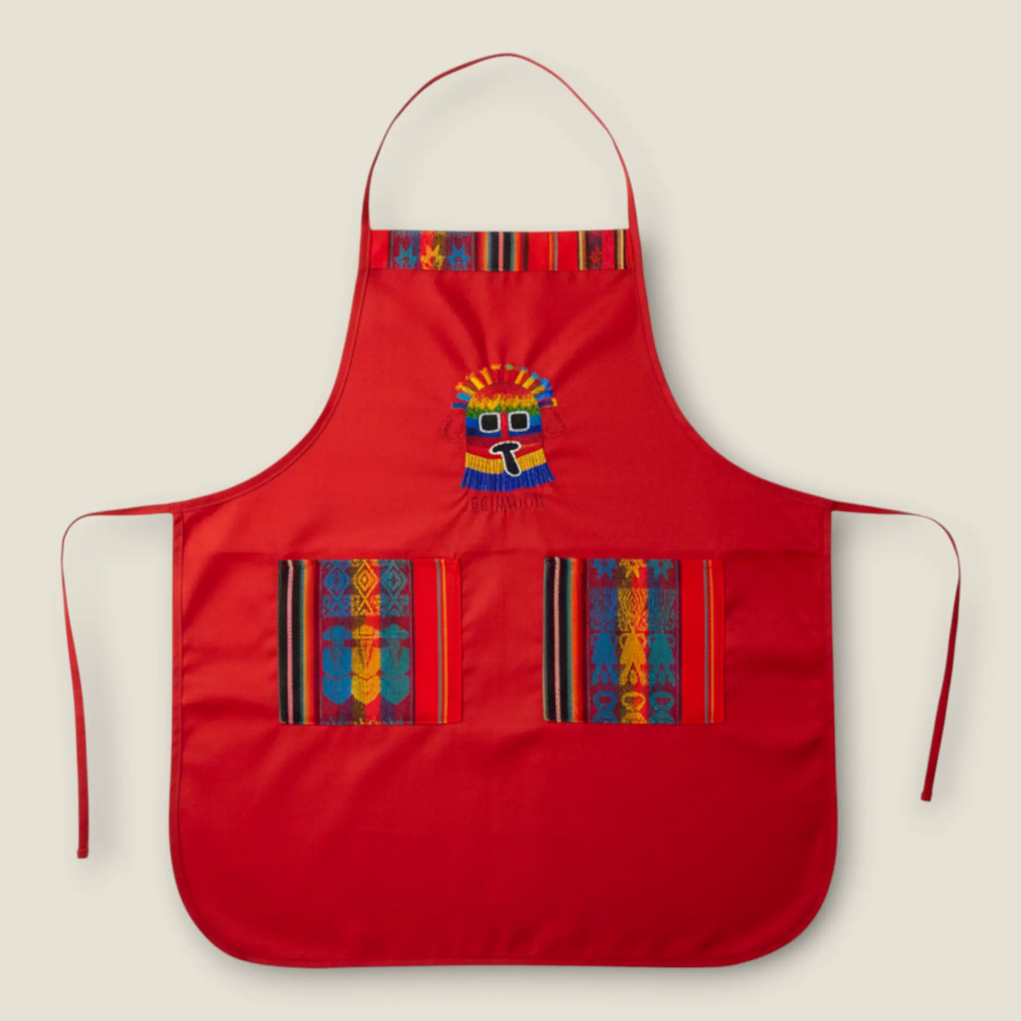 Add a splash of vibrant Ecuadorian flair to your cooking with this playful red kitchen apron. Designed to keep you clean while you whip up your favorite dishes, its bright color brings energy and fun to every meal prep. Perfect for chefs who love a pop of color and a touch of culture in the kitchen!