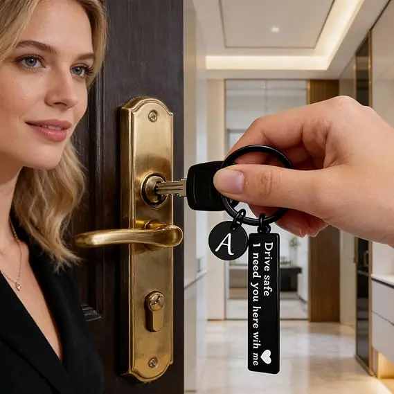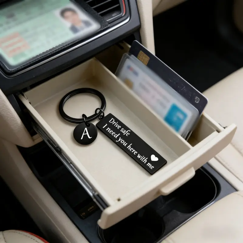 Heartfelt Drive Safe Message – Features the touching engraving paired with a delicate heart symbol. This keychain delivers a warm reminder of love and care, making it a perfect daily companion for anyone who values connection.