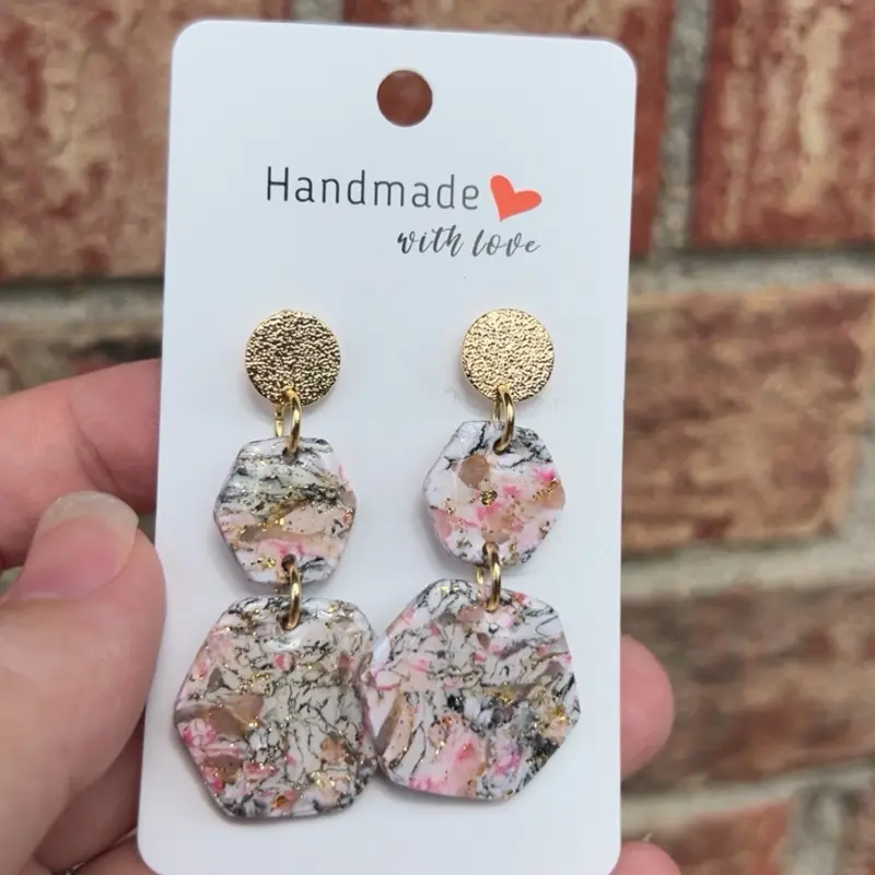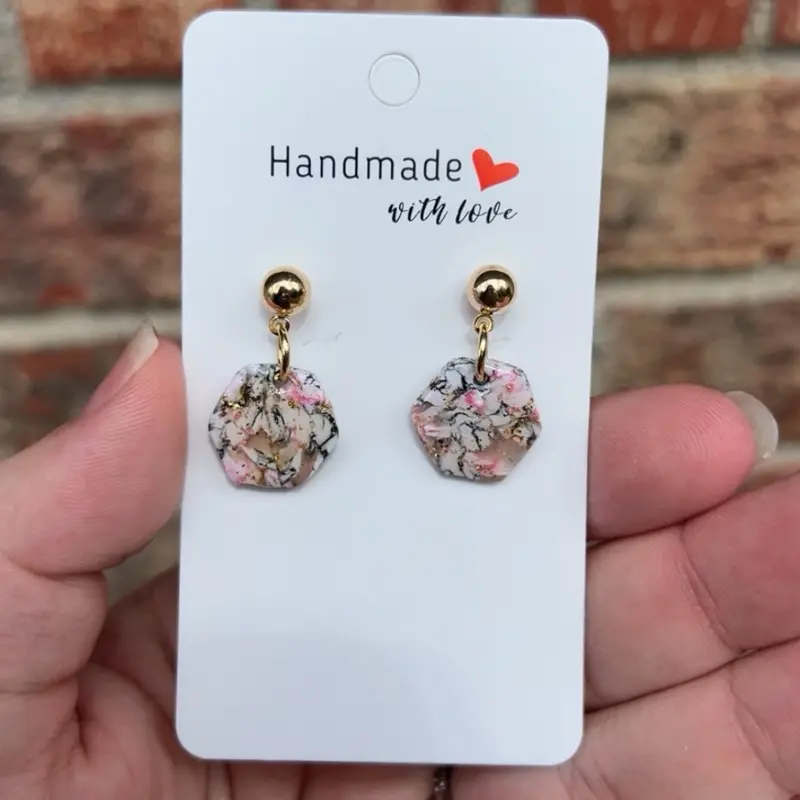 These earrings are meticulously crafted from polymer clay, offering a one-of-a-kind accessory. Each piece is handmade, ensuring a personal touch in every pair. Perfect for those who appreciate artisanal jewelry, these earrings add a distinctive flair to any outfit.