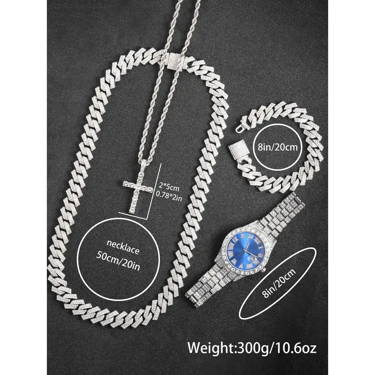 5. Luxury Punk Watch Set with Necklace Bracelet Cross Pendant, Analog Quartz Movement, Adjustable Strap, Unisex Gift Box for All Seasons, Fashionable Jewelry Set