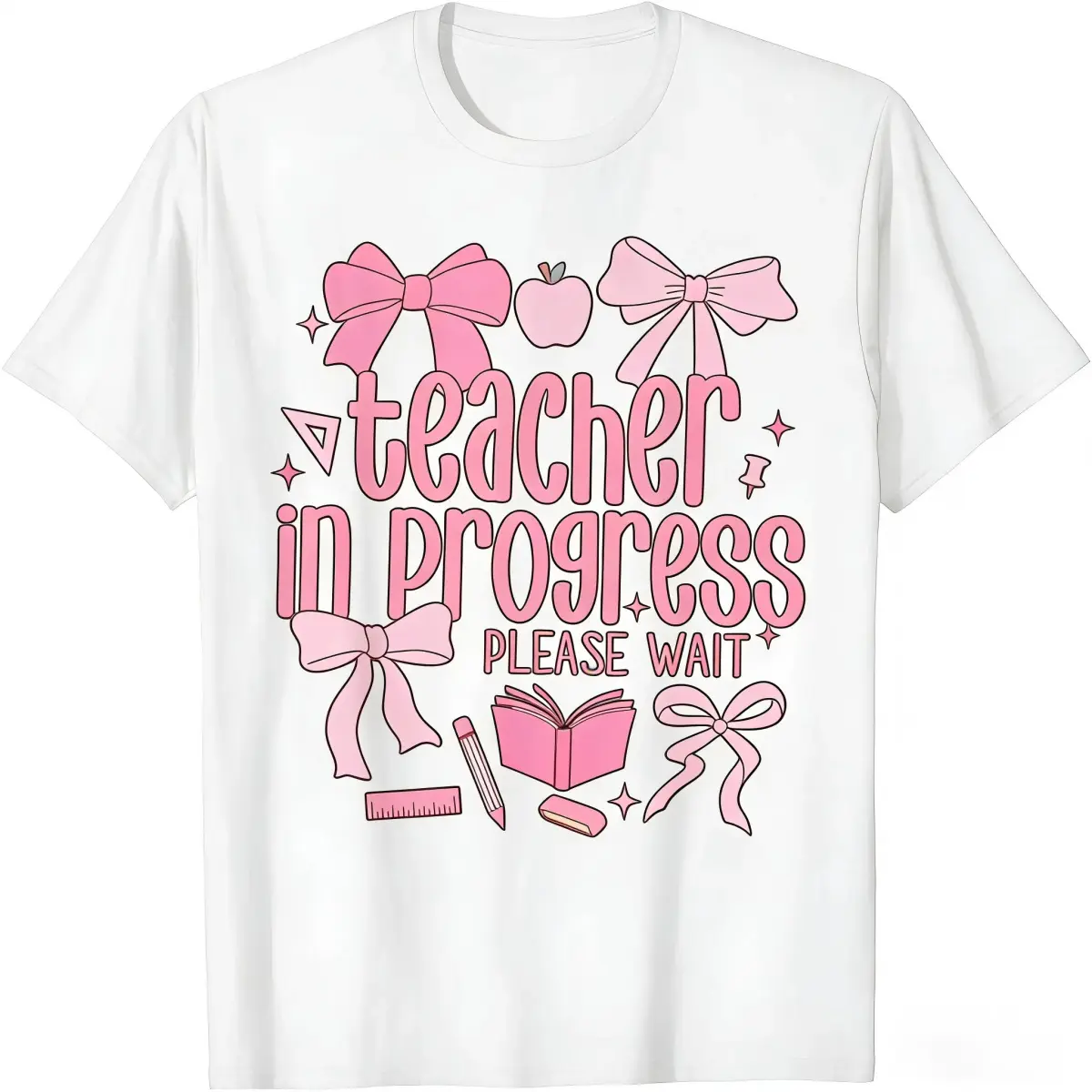 100% Cotton Unisex Women Teacher in Progress Coquette Pink Bow Future Teacher T-Shirt