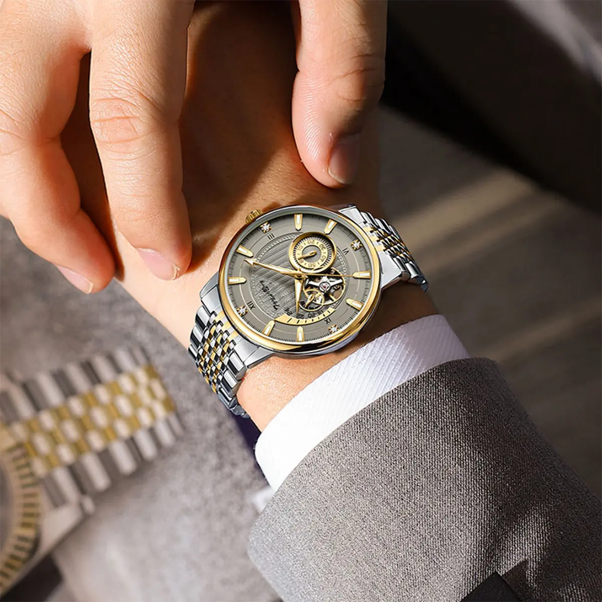 5. TINAIBIN Men's Diamond Business Formal Pointer Automatic Mechanical Watch Stainless Steel Waterproof Luminous Two-color Luxury Casual Watch