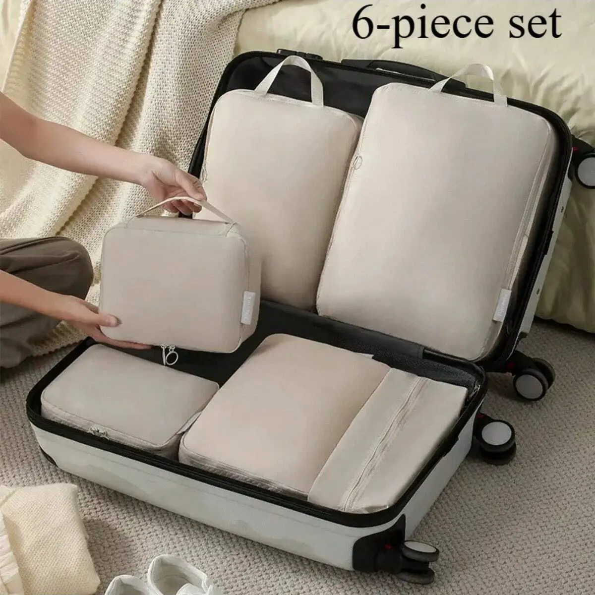 [Easy-Clean] Compression Packing Cubes | 1set of 6pcs| Polyester | Easy-Clean, Lightweight | Travel Organizer | Luggage and Clothes Sorting | Hand Wash or Professional Dry Clean