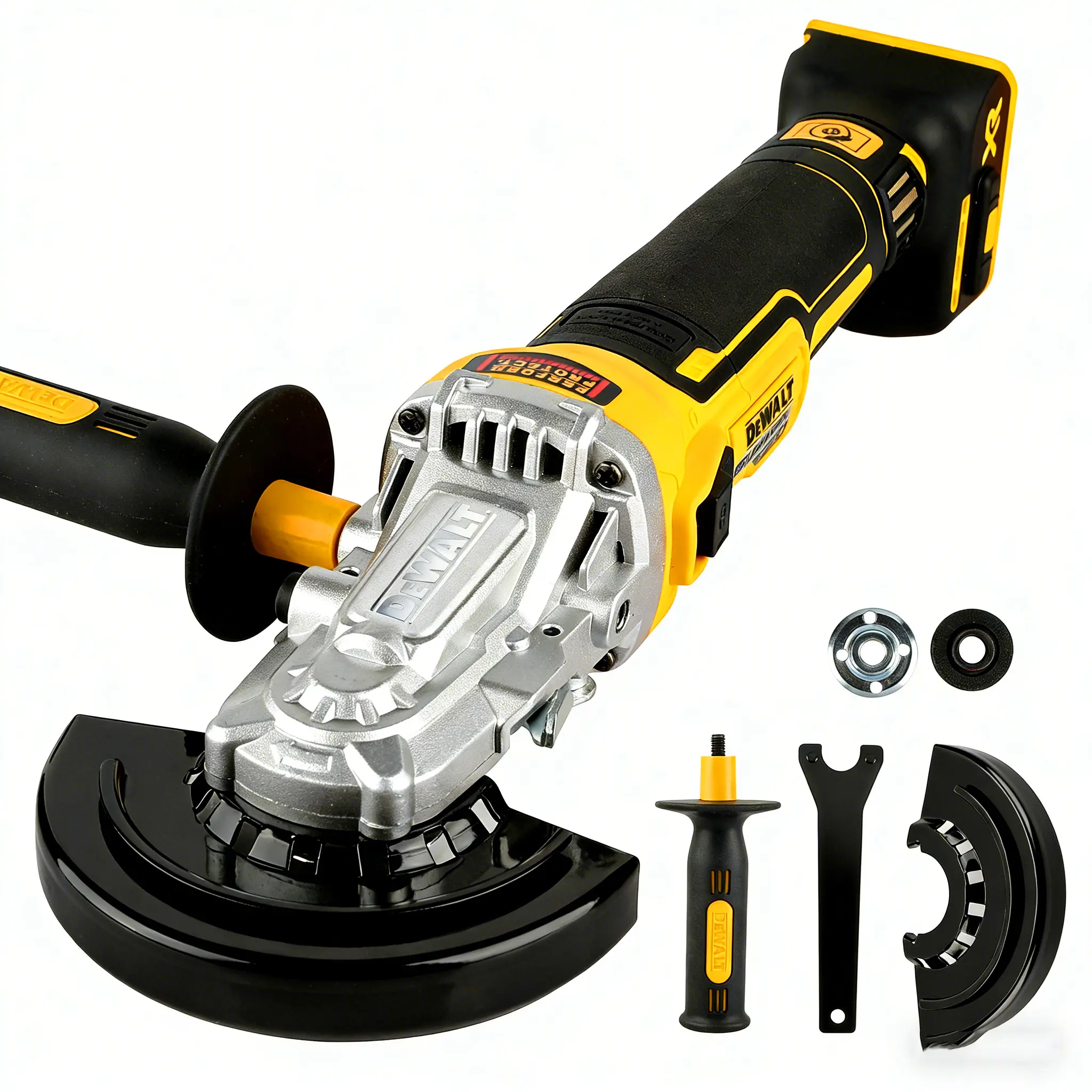 Built with a tool-free adjustable guard for quick, easy wheel changes and angle adjustments, plus a durable auxiliary side handle for enhanced control and vibration reduction. The dust-sealed switch and motor housing protect against job-site debris, extending tool life, while the anti-kickback brake adds an extra layer of safety for every operation.