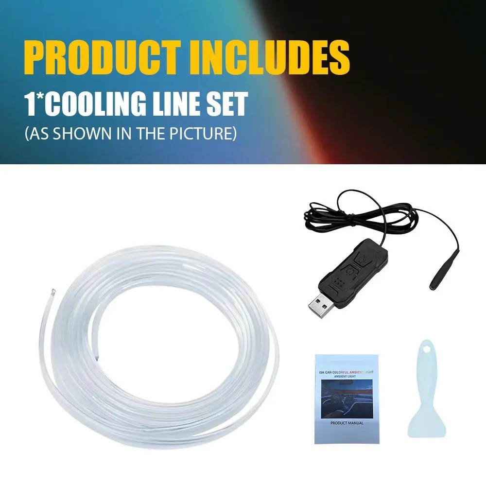 The 5-meter light strip gives you have stylish and attractive interior and creates a special lighting atmosphere. LED light source and optical fiber are pre-installed, and only need to clip the optical fiber into the gap in the vehicle.