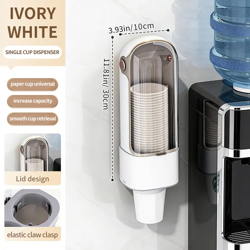 One-touch cup dispenser, automatic water dispenser, no-drill paper cup holder, dustproof kitchen storage rack, wall-mounted cup holder