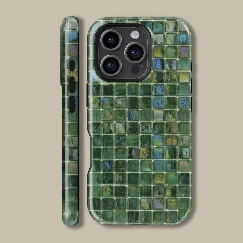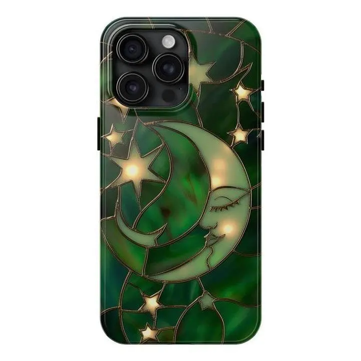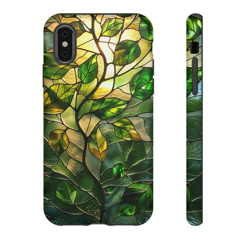 [IP 16 & IP 17 NEW] Green Vibe Faux Stained Glass Collection Printed Tough Phone Case for iPhone