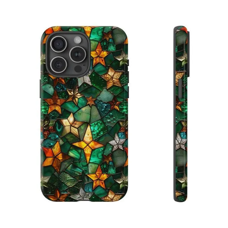 5. [IP 16 & IP 17 NEW] Green Vibe Faux Stained Glass Collection Printed Tough Phone Case for iPhone