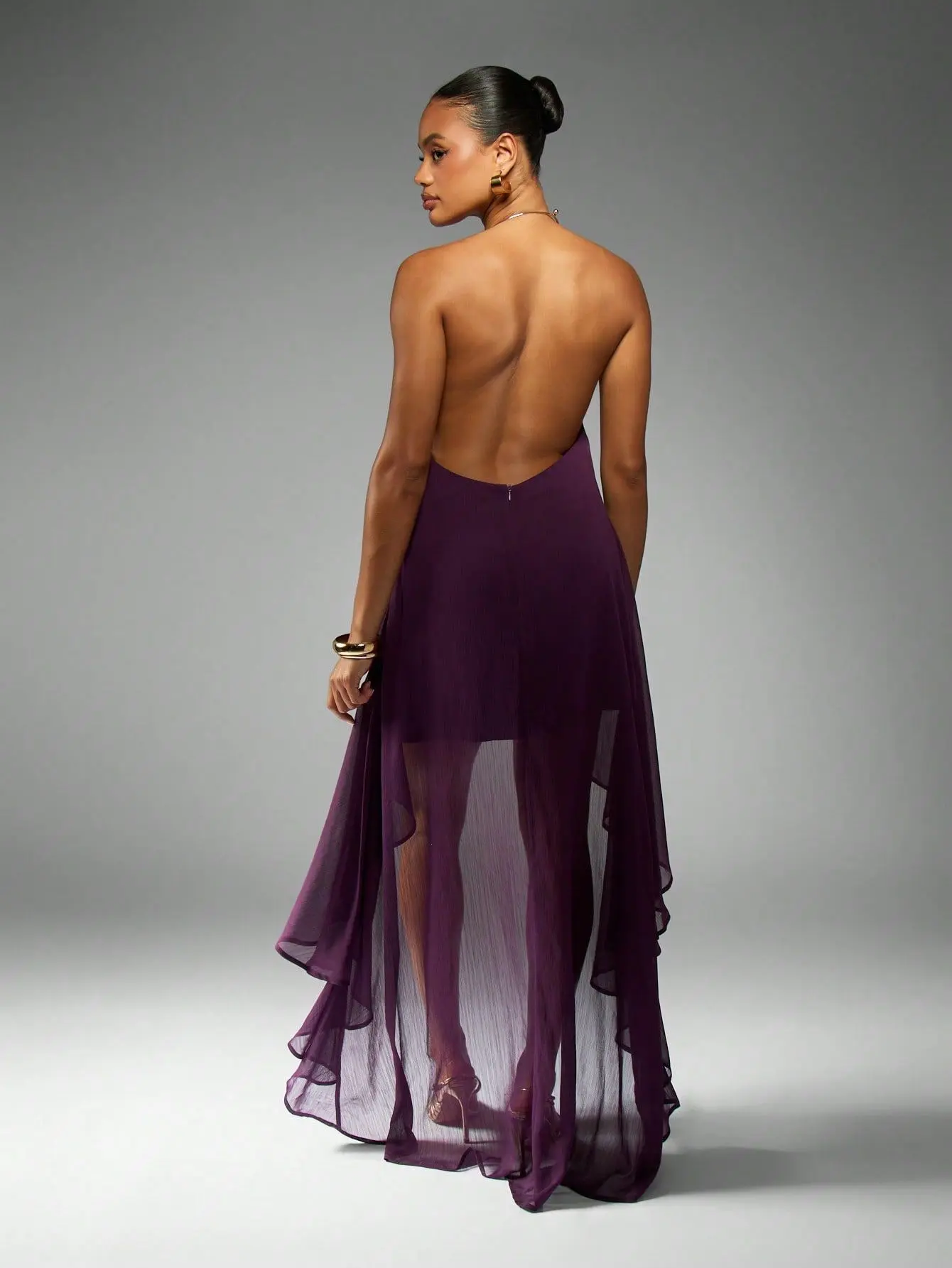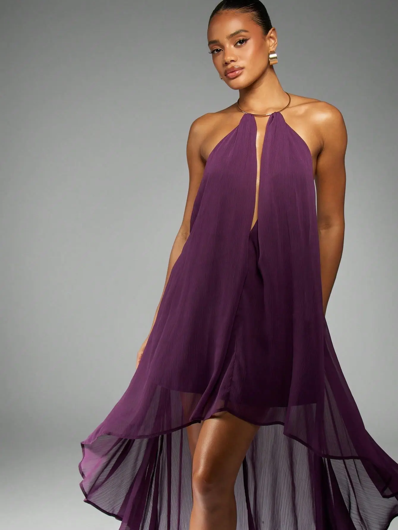 Flowing High Low Chiffon Halter Neck Maxi Dress