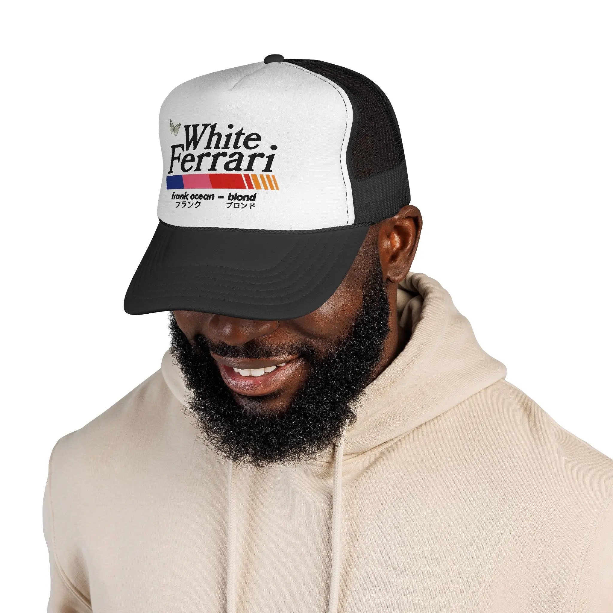 5. Frank Ocean Blond Trucker Hat, White Ferrari Song Cap, Mesh Snapback Baseball Hat, Music Fan Streetwear Cap, Gift for Fans