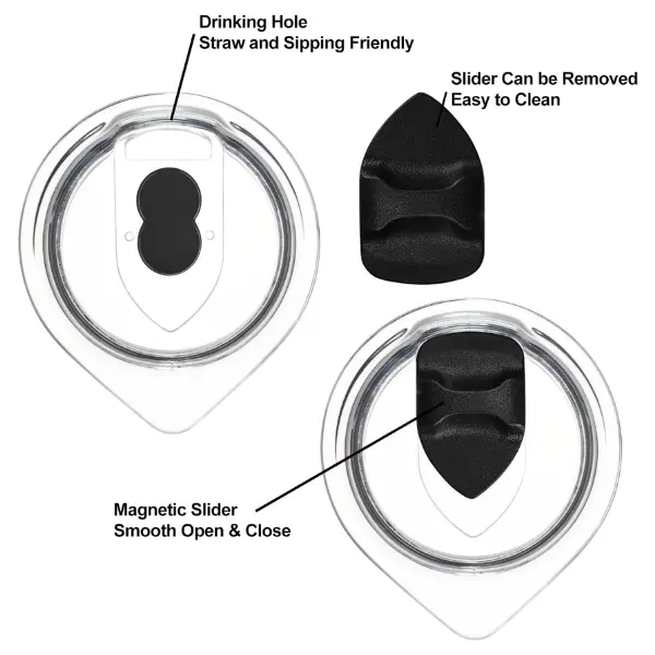 Upgrade Your Tumbler Experience Keep your favorite beverages secure with our high-quality magnetic slider lids. Designed as a perfect replacement for lost or damaged covers, these lids provide a smooth sliding mechanism and excellent splash resistance.