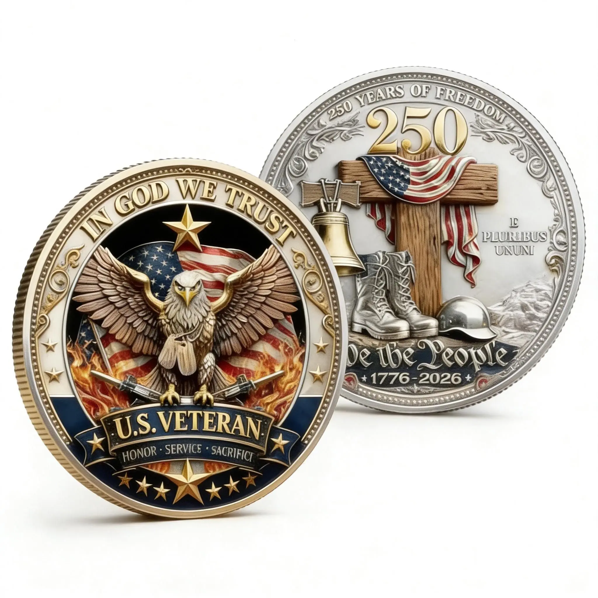 U.S. Veteran Coin-Liberty Bell&Boots Honor Service Sacrifice Gift for Him Her Custom America Merchandise 250 Collectible 250th Anniversary USA Independence Commemorative Coin 1776–2026 Independence Day
