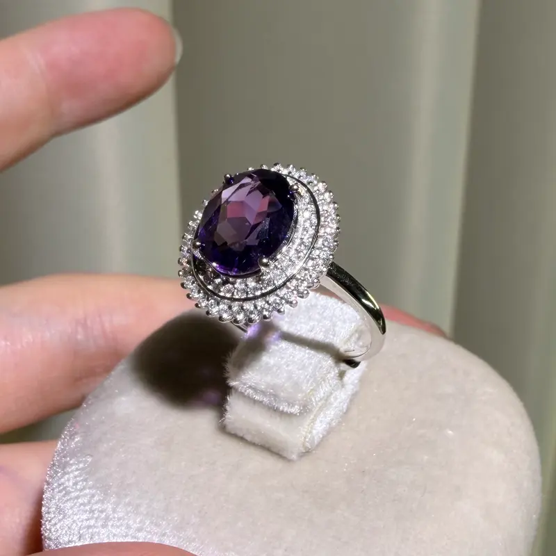 S925 sterling silver ring, Natural Amethyst gemstone, adjustable size, set size wirh a 10*8mm, high quality setting Engagement Ring, Elegant and Luxurious for Women,,Grils as Wedding&Birthday Gift, Perfect for Daily Wear and Party, Valentine's Day Gift